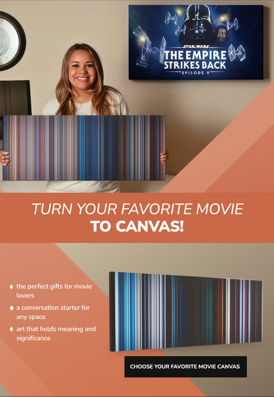 At Frome, we turn your favorite stories into stunning visuals — whether it’s the colors of a film or the coordinates of a life-changing moment. 🎬 Movie-Inspired Art - We transform iconic films and music videos into vibrant color stripes — each stripe represents the average color of a scene, arranged chronologically to capture the essence of the story. Learn how it works ›