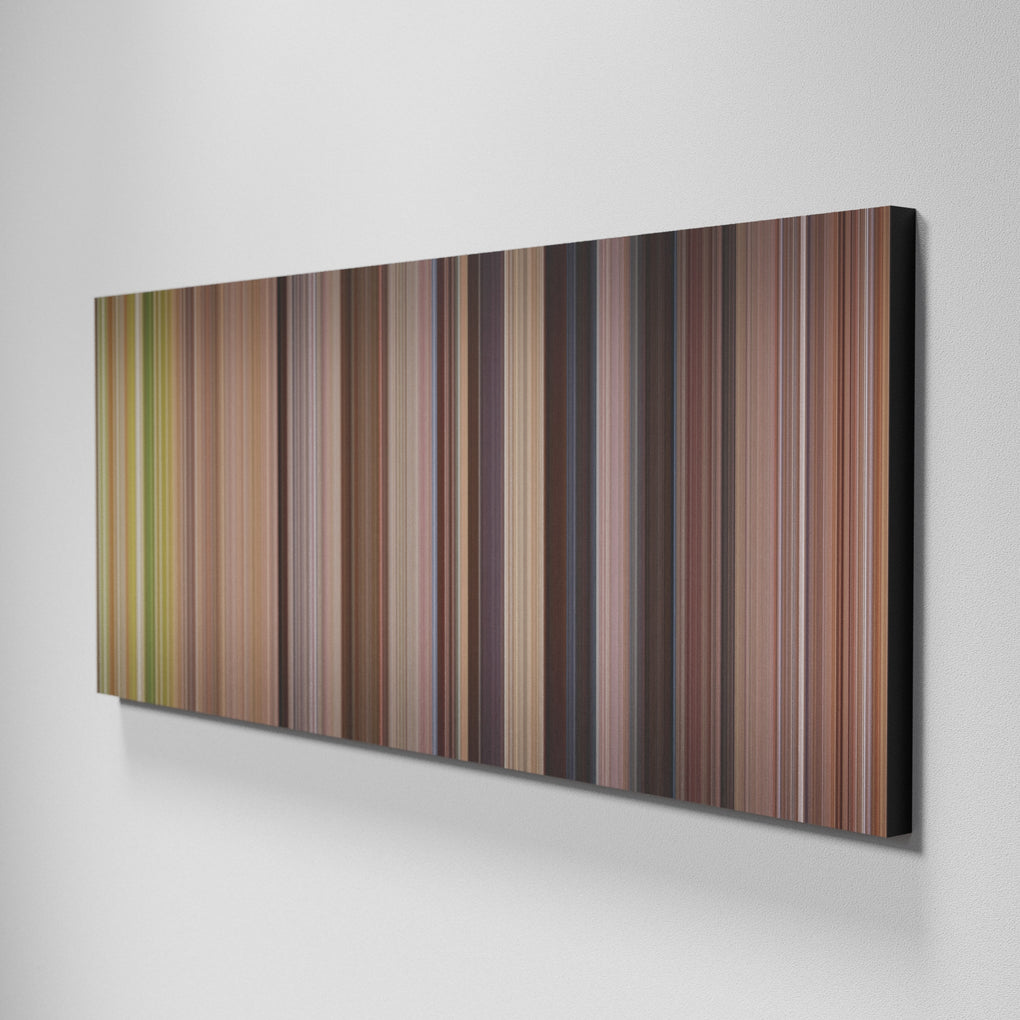 Presenting the ultimate treat for lovers of movies. For the first time ever, we’ve mapped out on canvas the entire DNA from start to finish. Every vertical stripe represents a scene with the color taken as the average of all the frames within that scene.