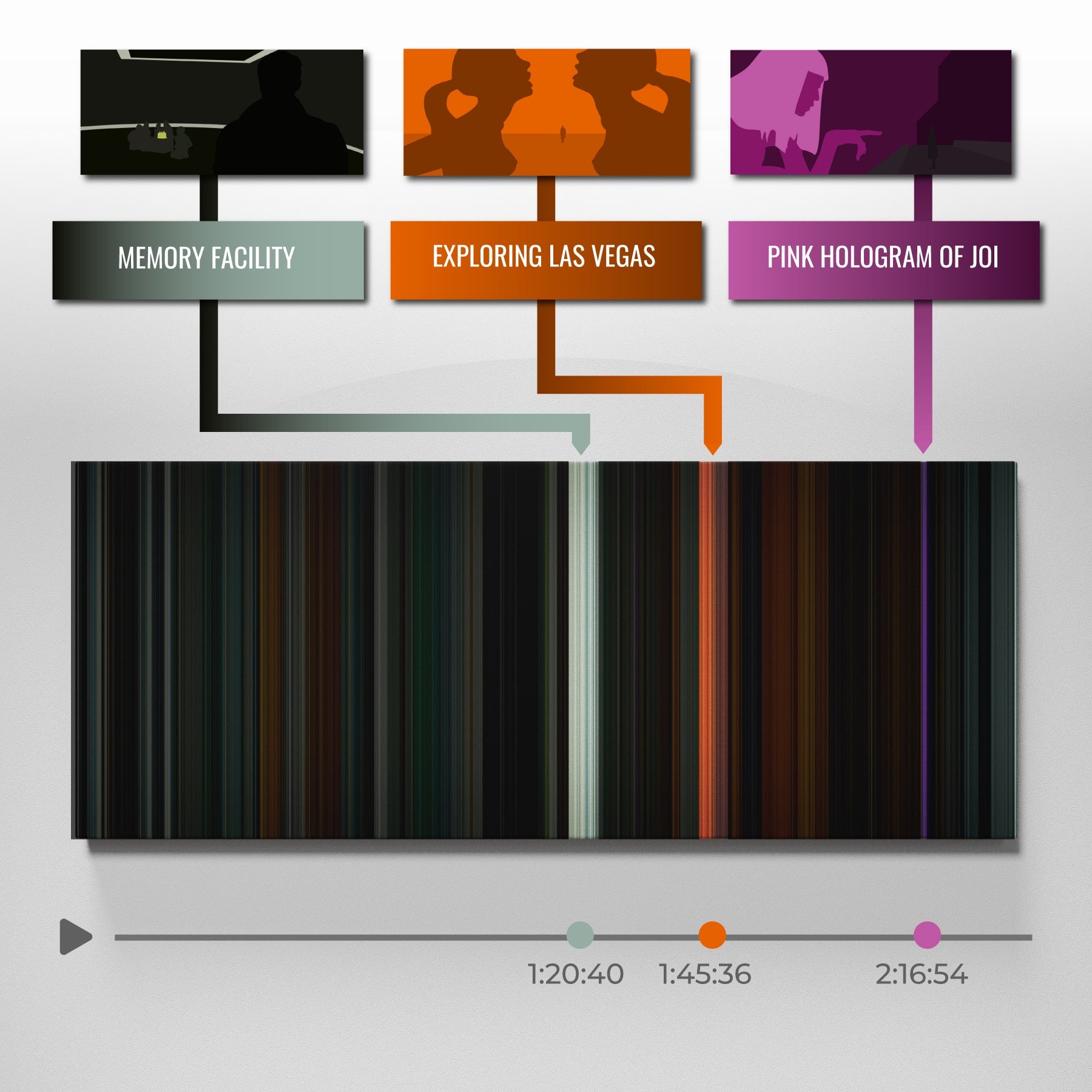 Presenting the ultimate treat for lovers of movies. For the first time ever, we’ve mapped out on canvas the entire DNA from start to finish. Every vertical stripe represents a scene with the color taken as the average of all the frames within that scene.