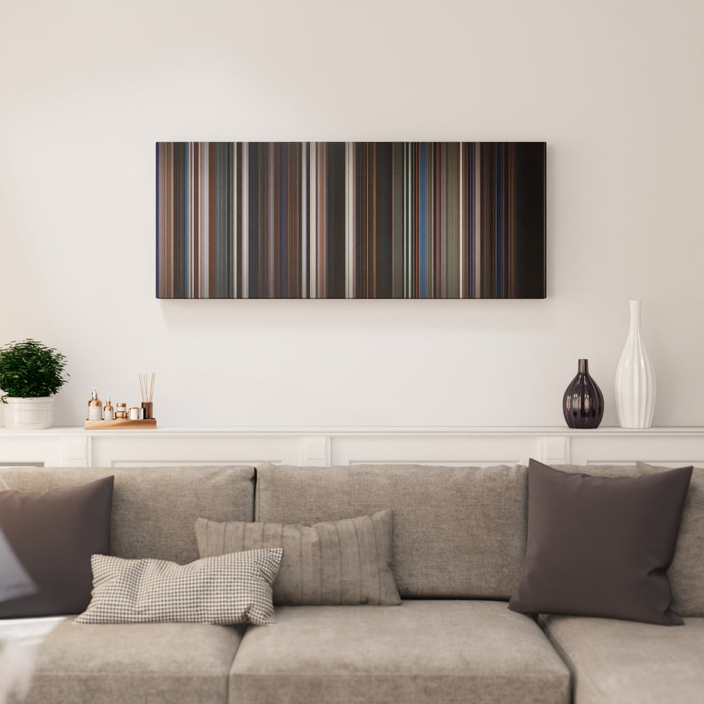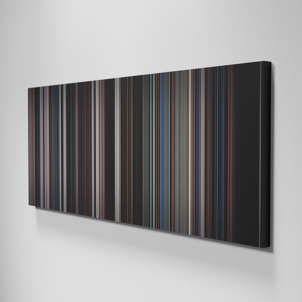 Presenting the ultimate treat for lovers of movies. For the first time ever, we’ve mapped out on canvas the entire DNA from start to finish. Every vertical stripe represents a scene with the color taken as the average of all the frames within that scene.