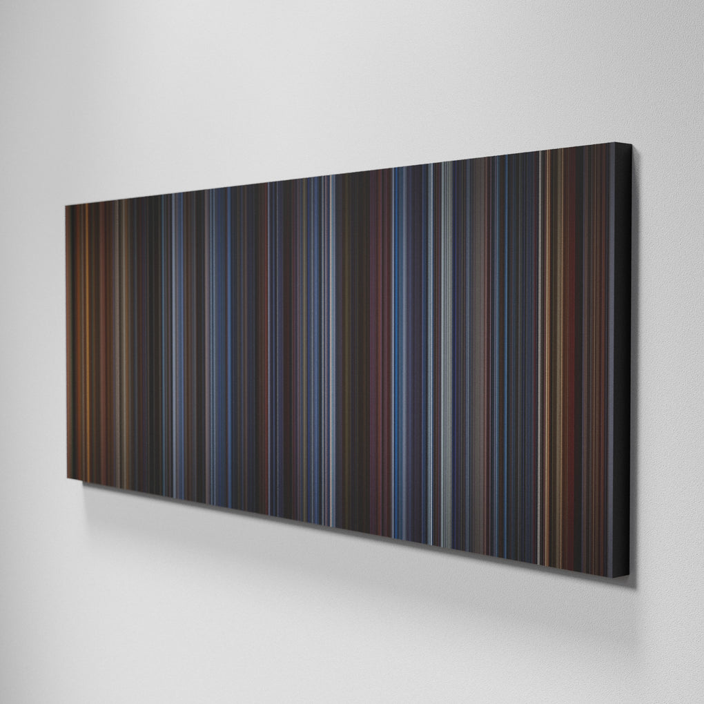 Presenting the ultimate treat for lovers of movies. For the first time ever, we’ve mapped out on canvas the entire DNA from start to finish. Every vertical stripe represents a scene with the color taken as the average of all the frames within that scene.