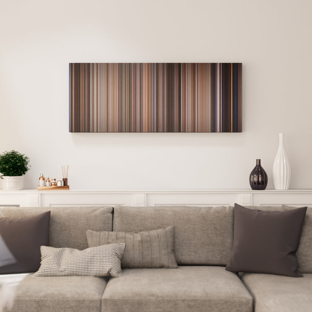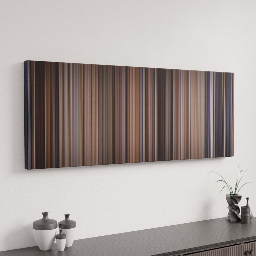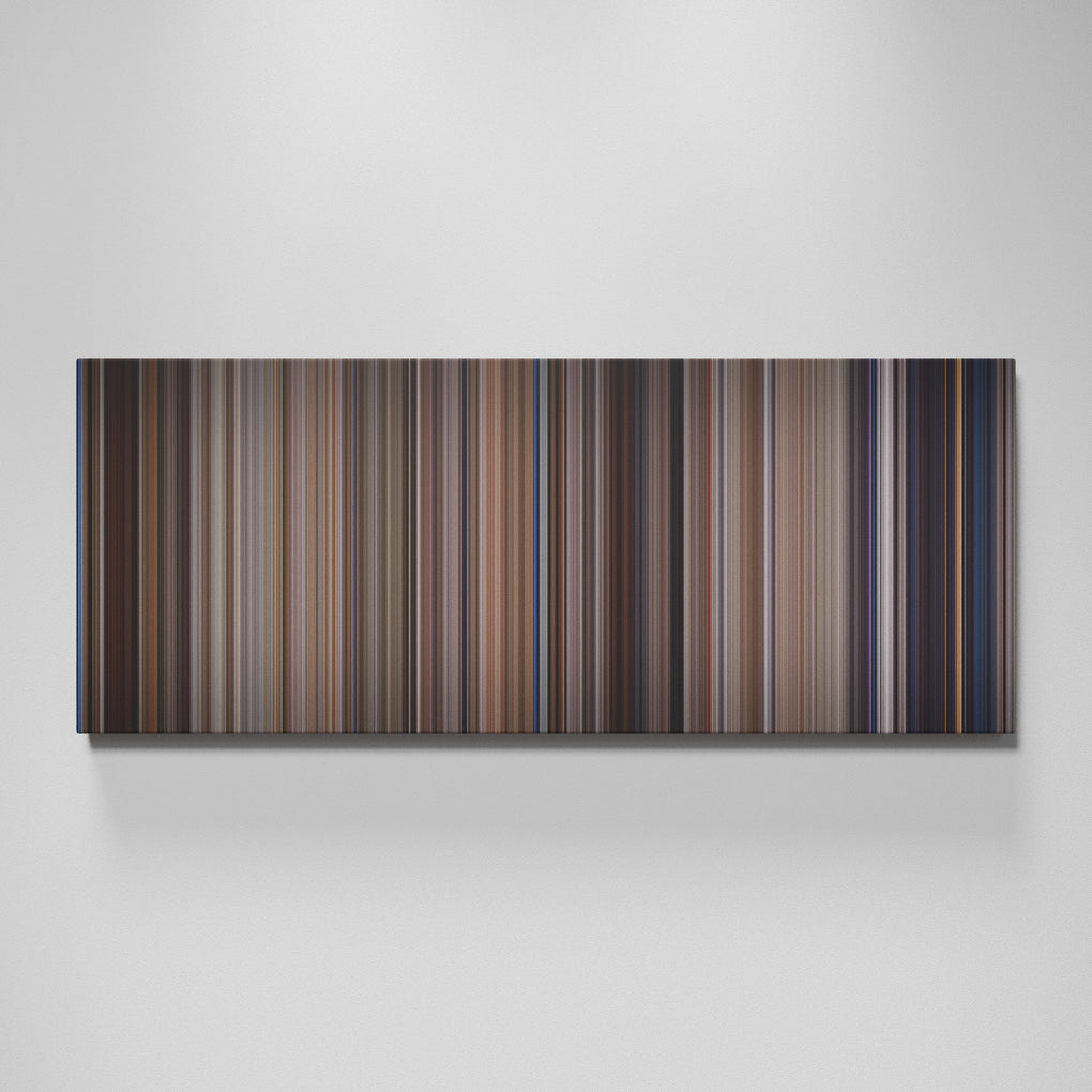 Presenting the ultimate treat for lovers of movies. For the first time ever, we’ve mapped out on canvas the entire DNA from start to finish. Every vertical stripe represents a scene with the color taken as the average of all the frames within that scene.