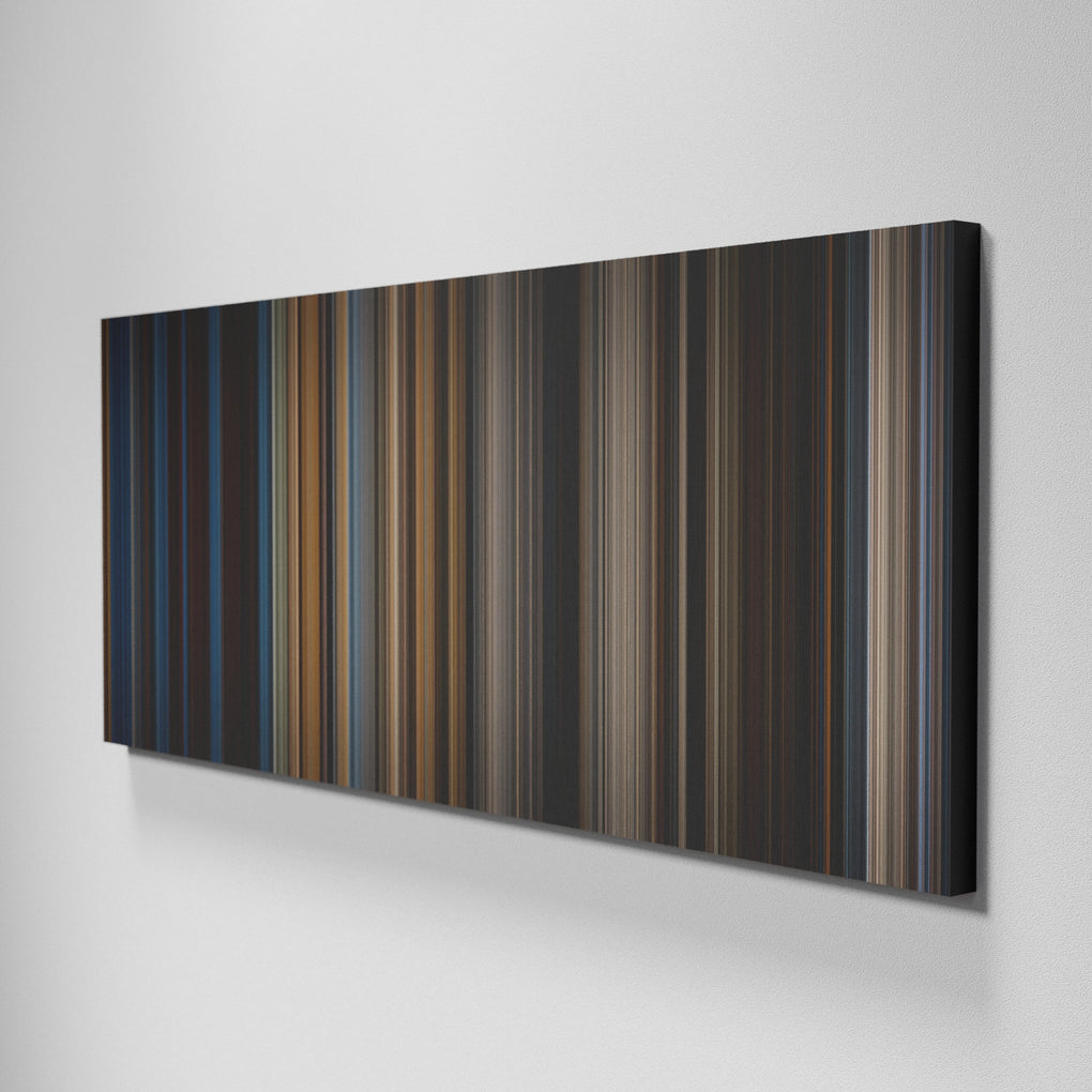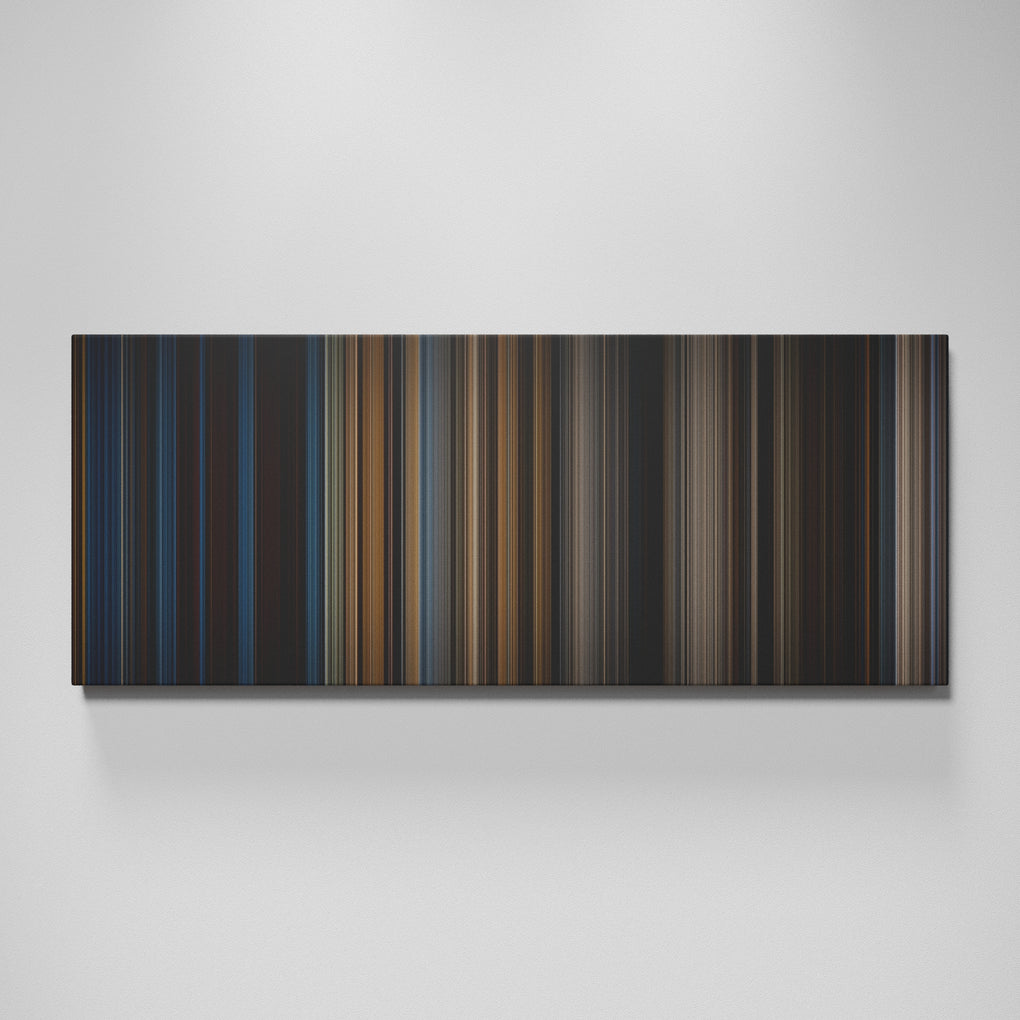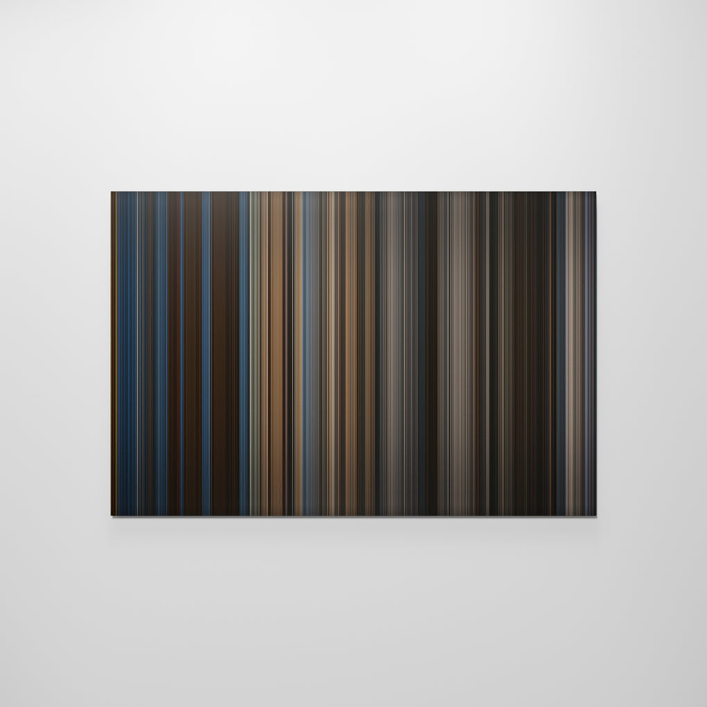 Presenting the ultimate treat for lovers of movies. For the first time ever, we’ve mapped out on canvas the entire DNA from start to finish. Every vertical stripe represents a scene with the color taken as the average of all the frames within that scene.