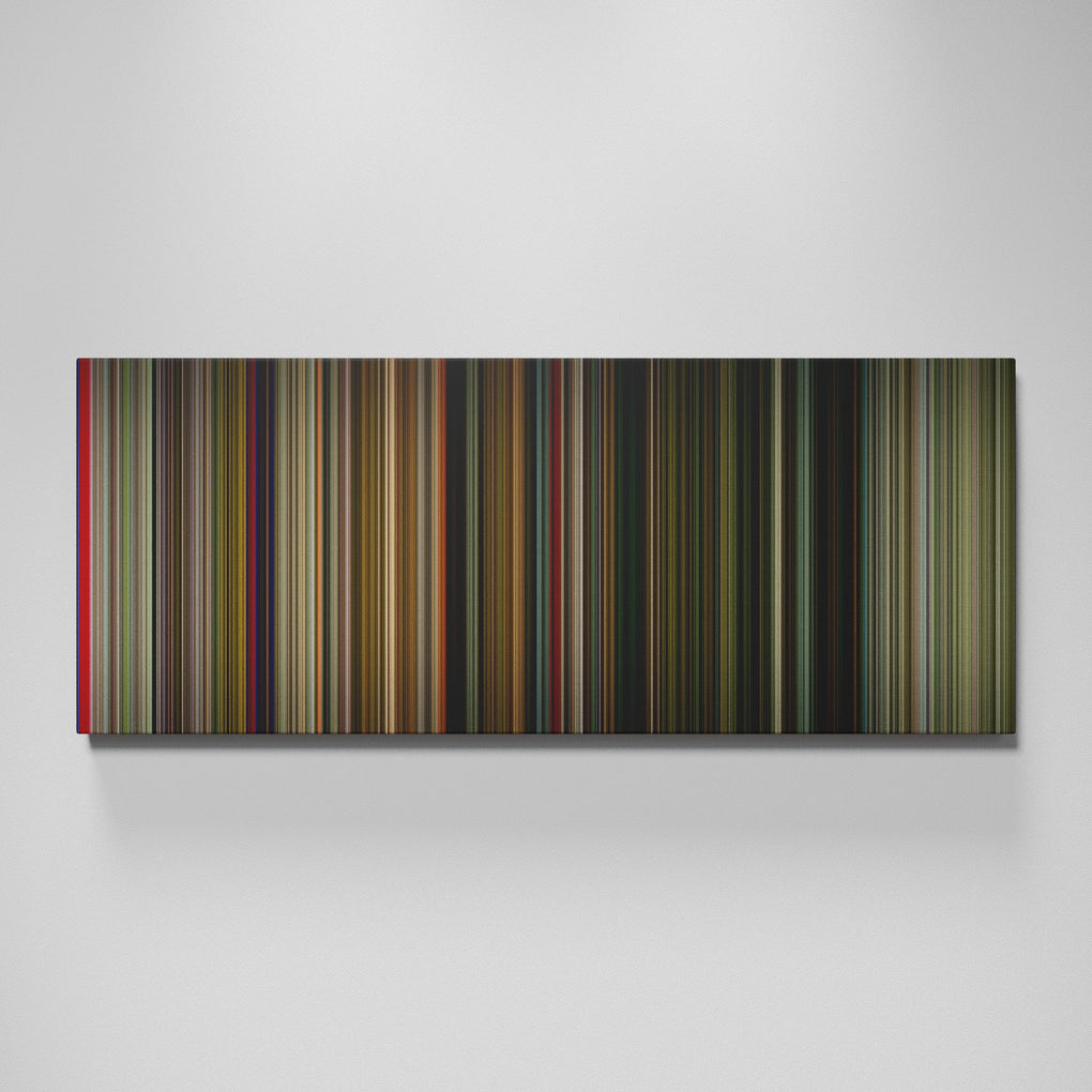 Presenting the ultimate treat for lovers of movies. For the first time ever, we’ve mapped out on canvas the entire DNA from start to finish. Every vertical stripe represents a scene with the color taken as the average of all the frames within that scene.