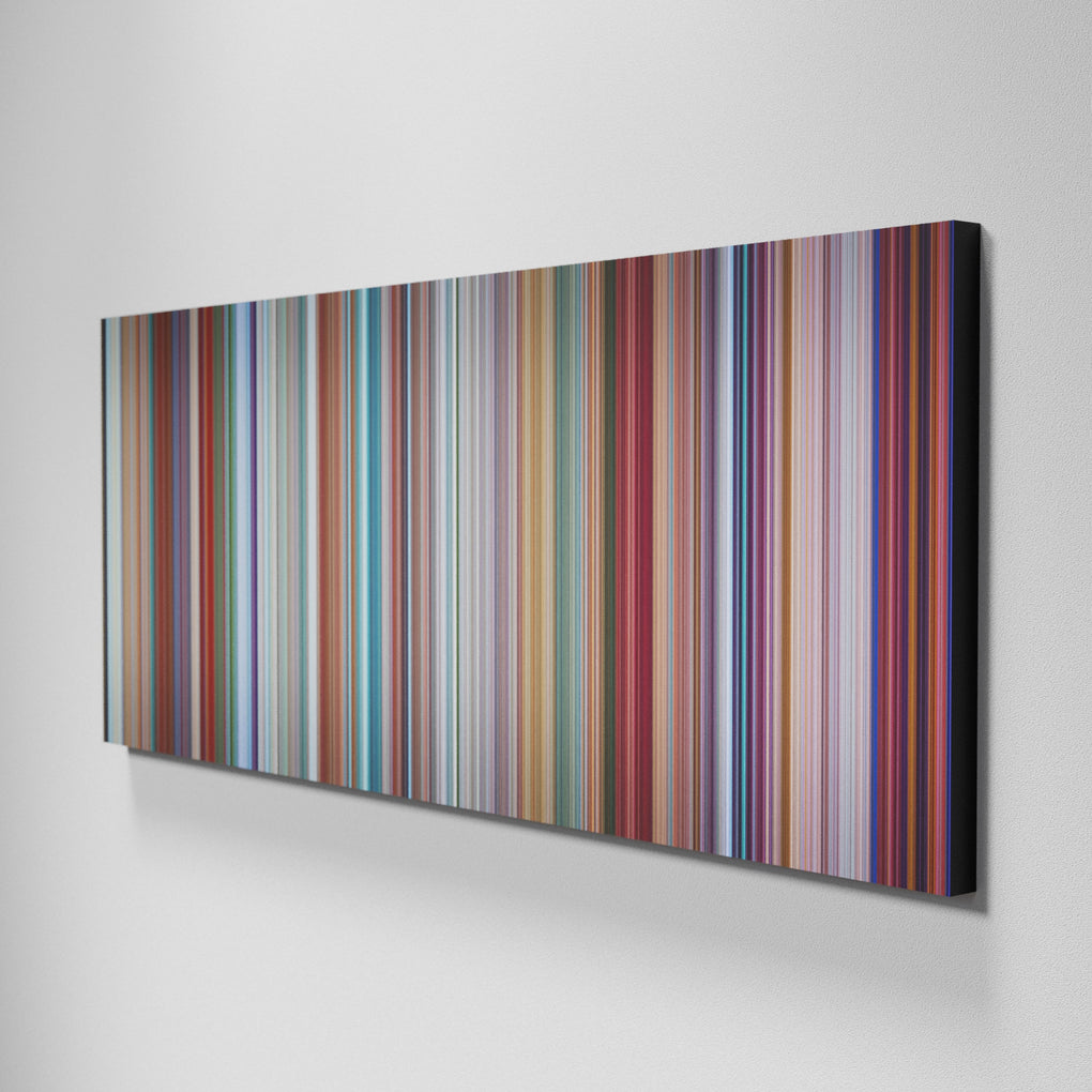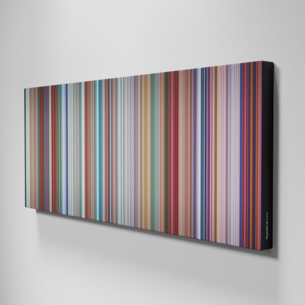 Presenting the ultimate treat for lovers of movies. For the first time ever, we’ve mapped out on canvas the entire DNA from start to finish. Every vertical stripe represents a scene with the color taken as the average of all the frames within that scene.