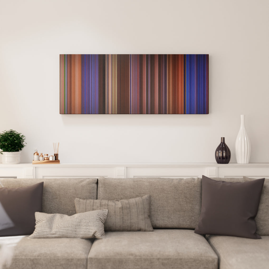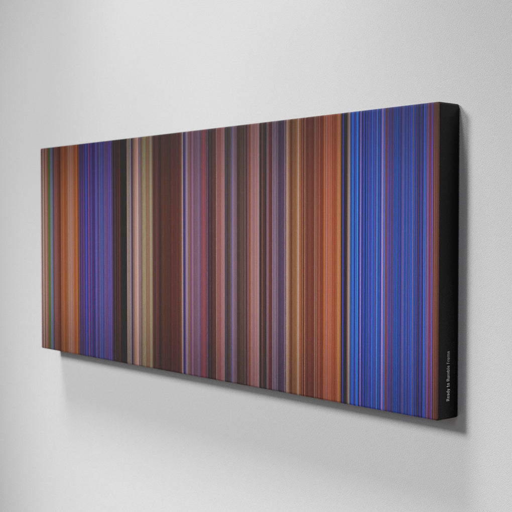 Presenting the ultimate treat for lovers of movies. For the first time ever, we’ve mapped out on canvas the entire DNA from start to finish. Every vertical stripe represents a scene with the color taken as the average of all the frames within that scene.