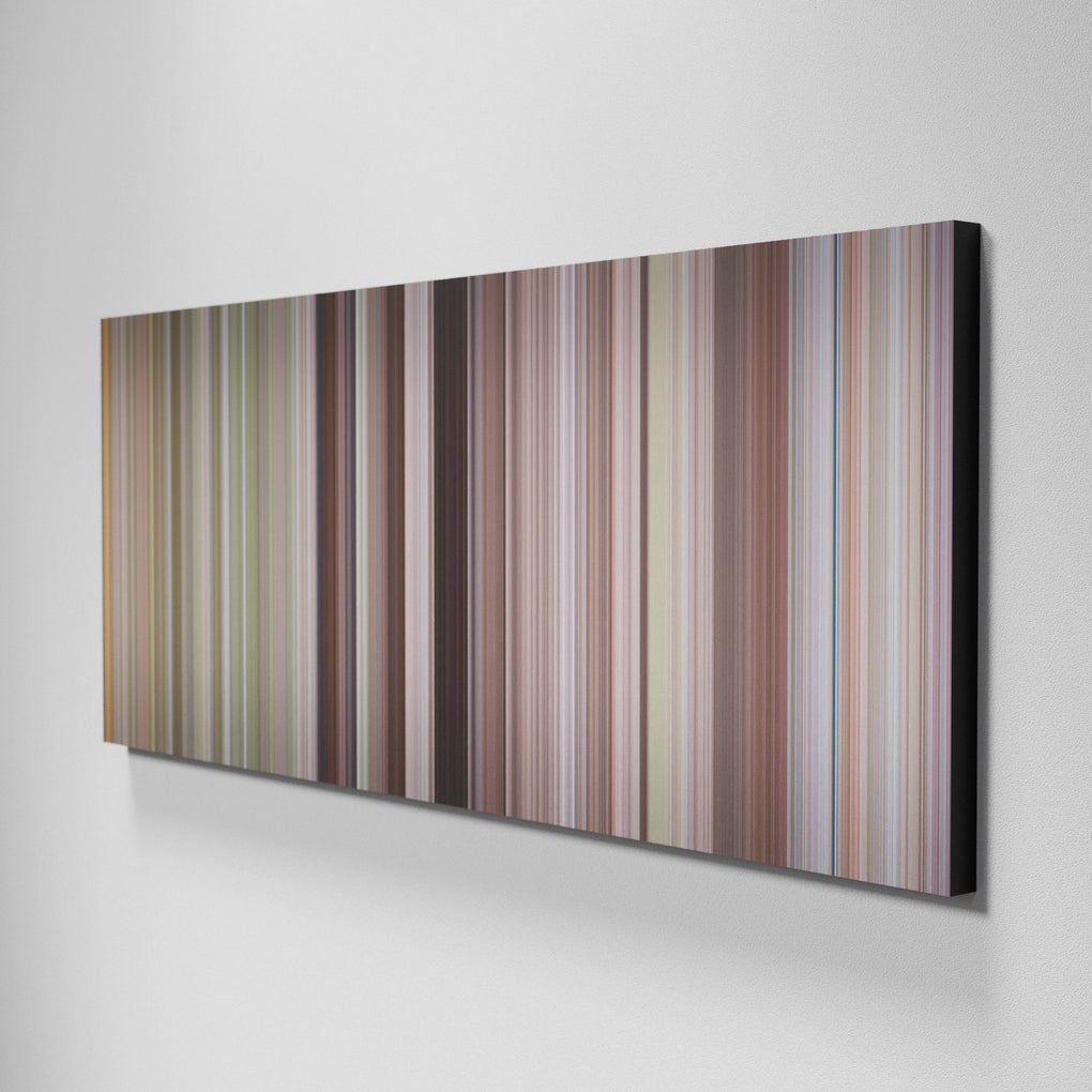 Presenting the ultimate treat for lovers of movies. For the first time ever, we’ve mapped out on canvas the entire DNA from start to finish. Every vertical stripe represents a scene with the color taken as the average of all the frames within that scene.