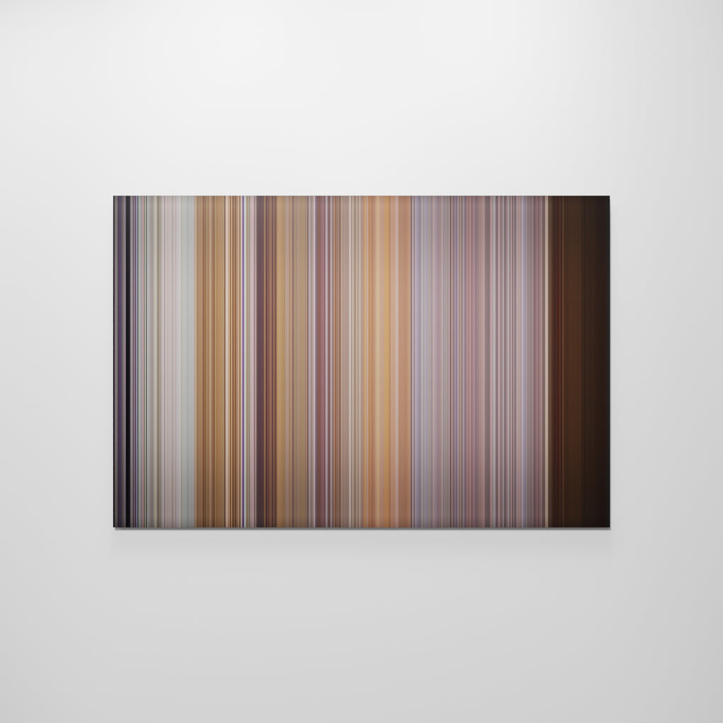 Presenting the ultimate treat for lovers of movies. For the first time ever, we’ve mapped out on canvas the entire DNA from start to finish. Every vertical stripe represents a scene with the color taken as the average of all the frames within that scene.