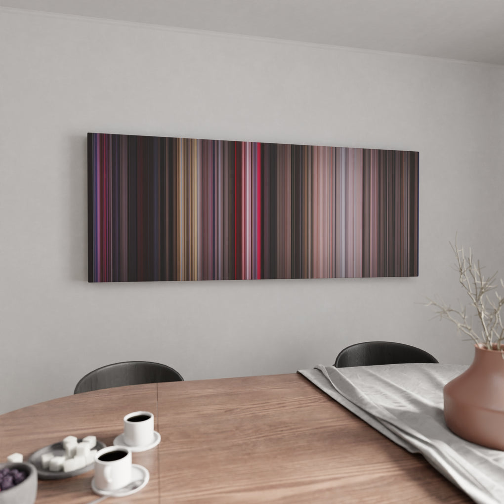 Presenting the ultimate treat for lovers of movies. For the first time ever, we’ve mapped out on canvas the entire DNA from start to finish. Every vertical stripe represents a scene with the color taken as the average of all the frames within that scene.