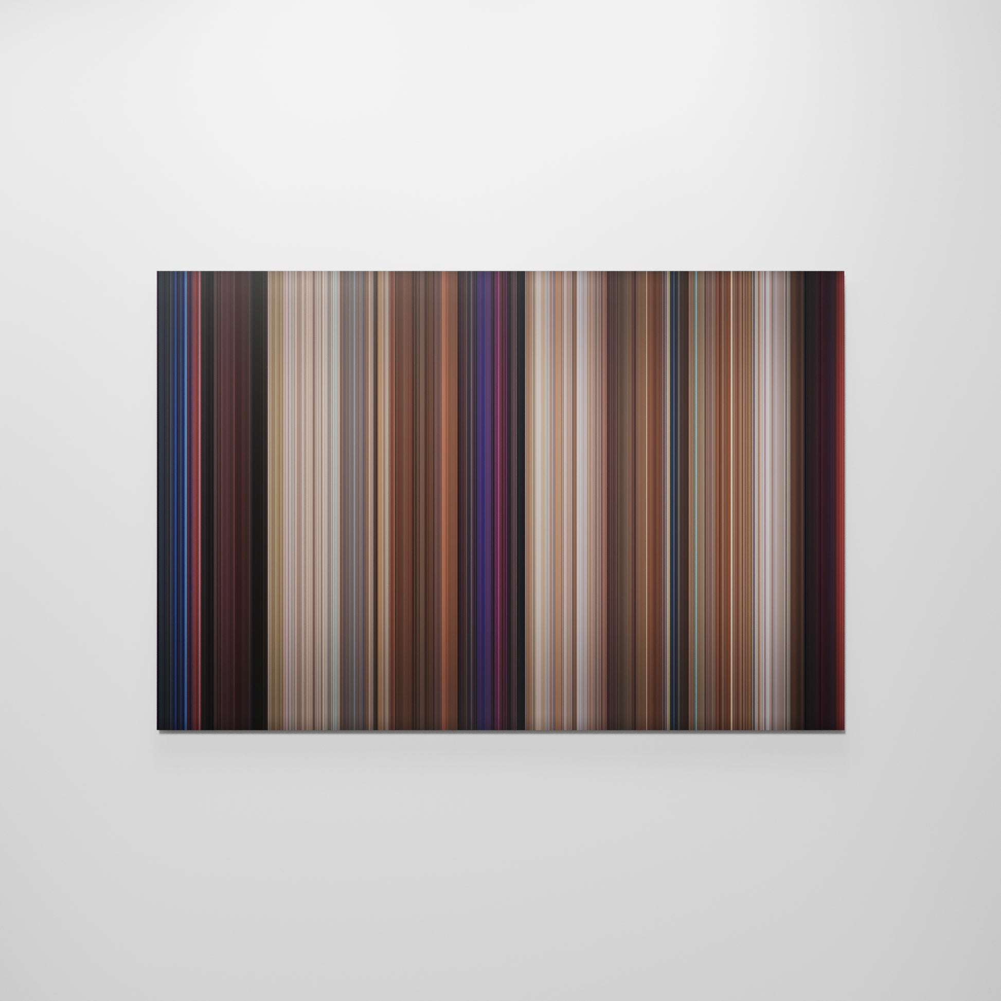 Presenting the ultimate treat for lovers of movies. For the first time ever, we’ve mapped out on canvas the entire DNA from start to finish. Every vertical stripe represents a scene with the color taken as the average of all the frames within that scene.