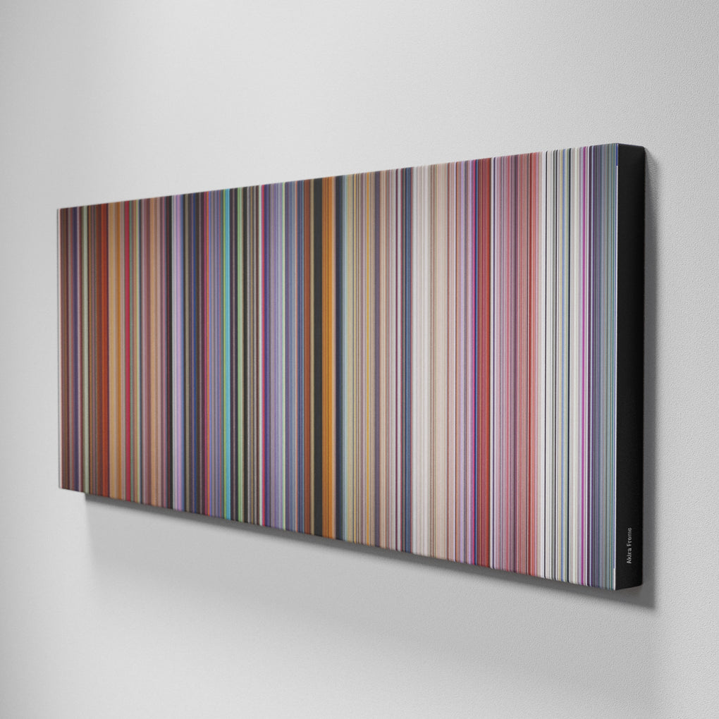 Presenting the ultimate treat for lovers of movies. For the first time ever, we’ve mapped out on canvas the entire DNA from start to finish. Every vertical stripe represents a scene with the color taken as the average of all the frames within that scene.