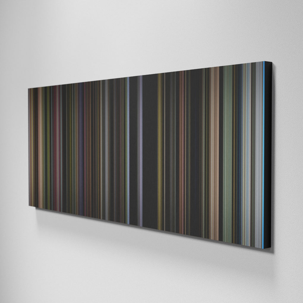 Presenting the ultimate treat for lovers of movies. For the first time ever, we’ve mapped out on canvas the entire DNA from start to finish. Every vertical stripe represents a scene with the color taken as the average of all the frames within that scene.