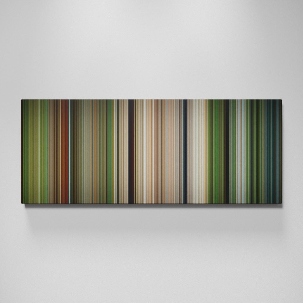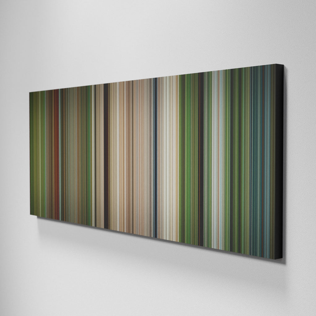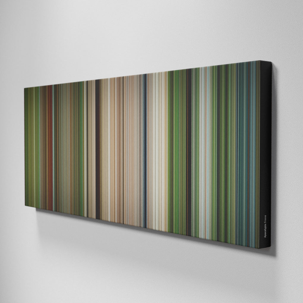 Presenting the ultimate treat for lovers of movies. For the first time ever, we’ve mapped out on canvas the entire DNA from start to finish. Every vertical stripe represents a scene with the color taken as the average of all the frames within that scene.
