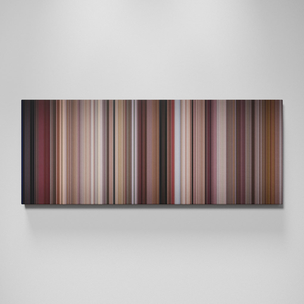 Presenting the ultimate treat for lovers of movies. For the first time ever, we’ve mapped out on canvas the entire DNA from start to finish. Every vertical stripe represents a scene with the color taken as the average of all the frames within that scene.