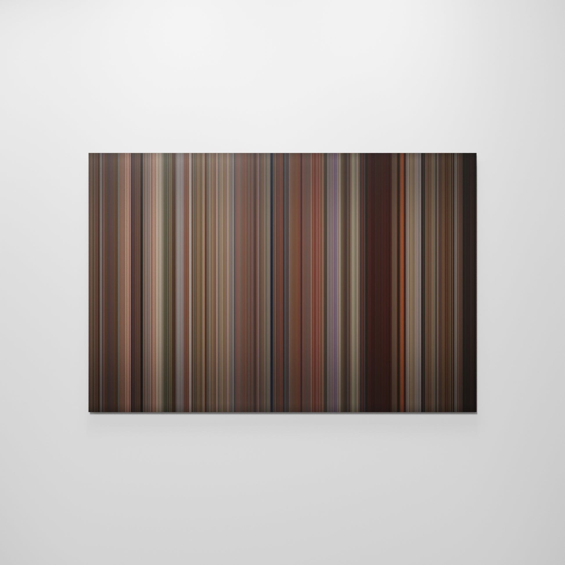 Presenting the ultimate treat for lovers of movies. For the first time ever, we’ve mapped out on canvas the entire DNA from start to finish. Every vertical stripe represents a scene with the color taken as the average of all the frames within that scene.
