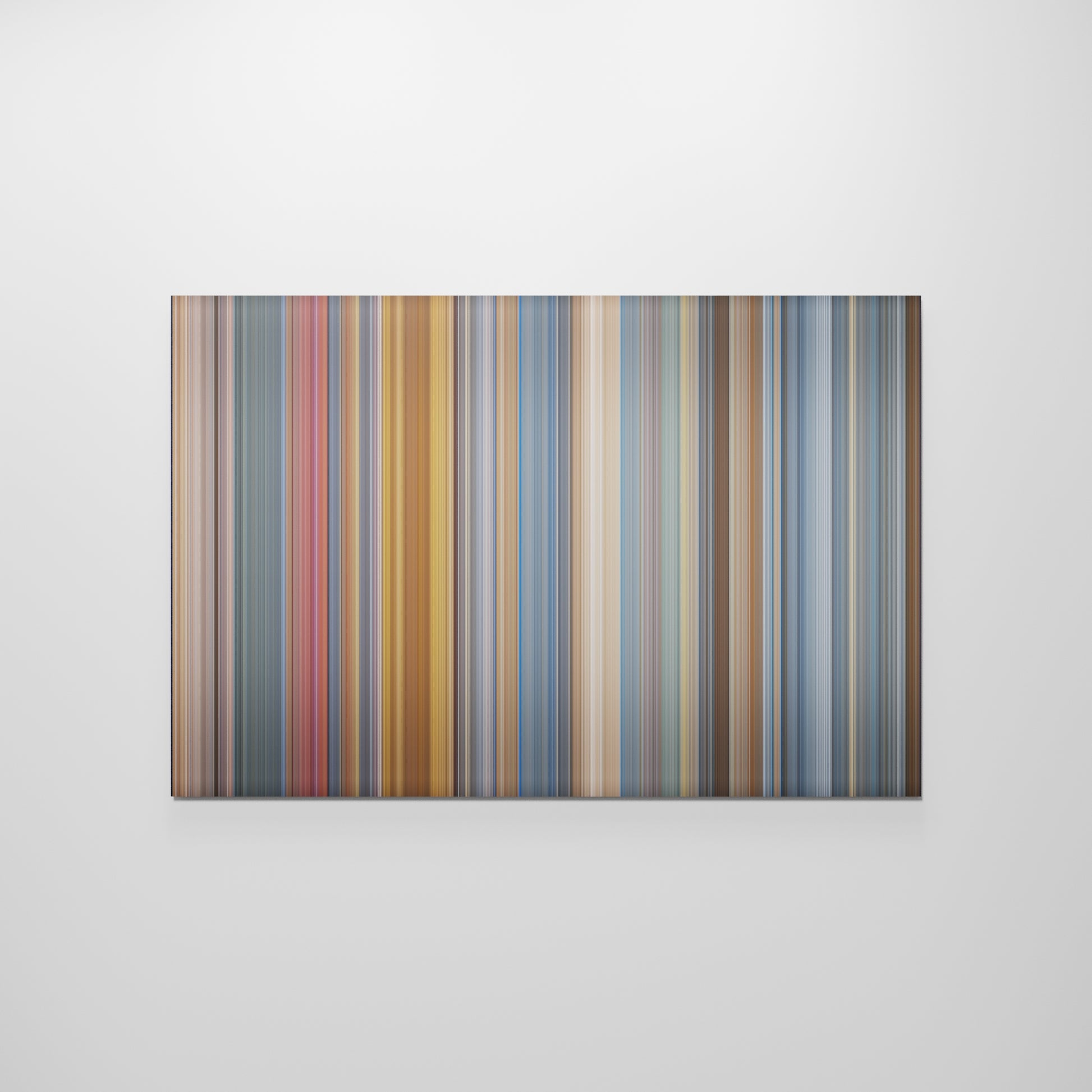 Presenting the ultimate treat for lovers of the movie Austin Powers in Goldmember. For the first time ever, we've mapped out on canvas the entire DNA of the film from start to finish. Every vertical stripe represents a scene from Austin Powers in Goldmember, with the color taken as the average of all the frames within that scene. When you take a step back, the overall impact is truly stunning! Cinema fans get a permanent reminder of this iconic film, which can be read again and again, just like a book. If you're looking for a truly unique piece of home decor packed with sentimental value, why not try Frome movie art?