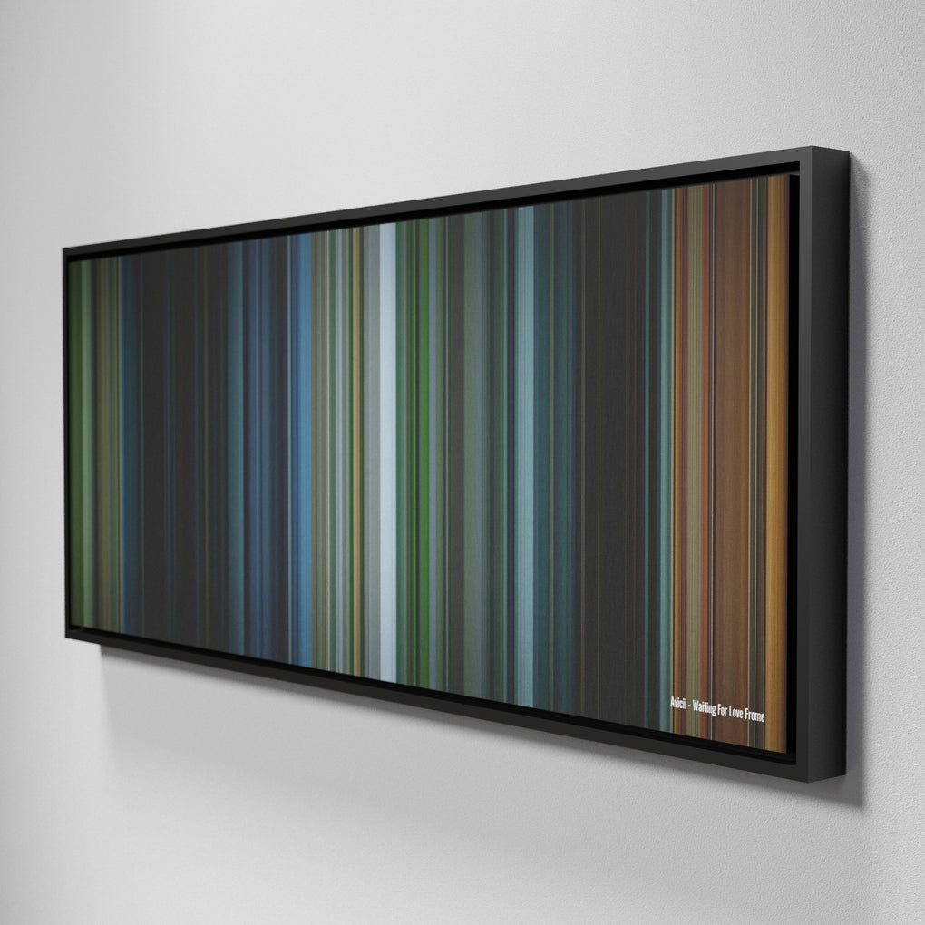 Presenting the ultimate treat for lovers of the Avicii - Waiting For Love song. For the first time ever, we've mapped out the entire DNA of the Avicii - Waiting For Love musical clip on canvas from start to finish. Every vertical stripe represents a scene from Avicii - Waiting For Love video, with the color taken as the average of all the frames within that scene.
