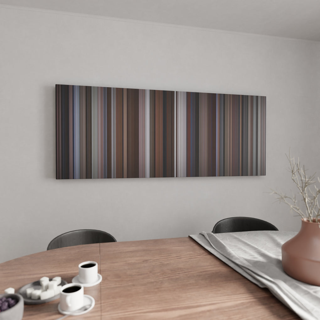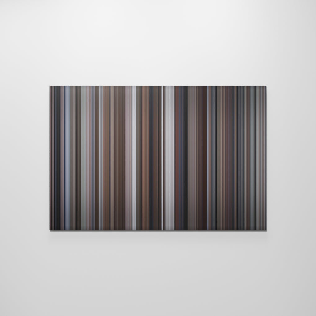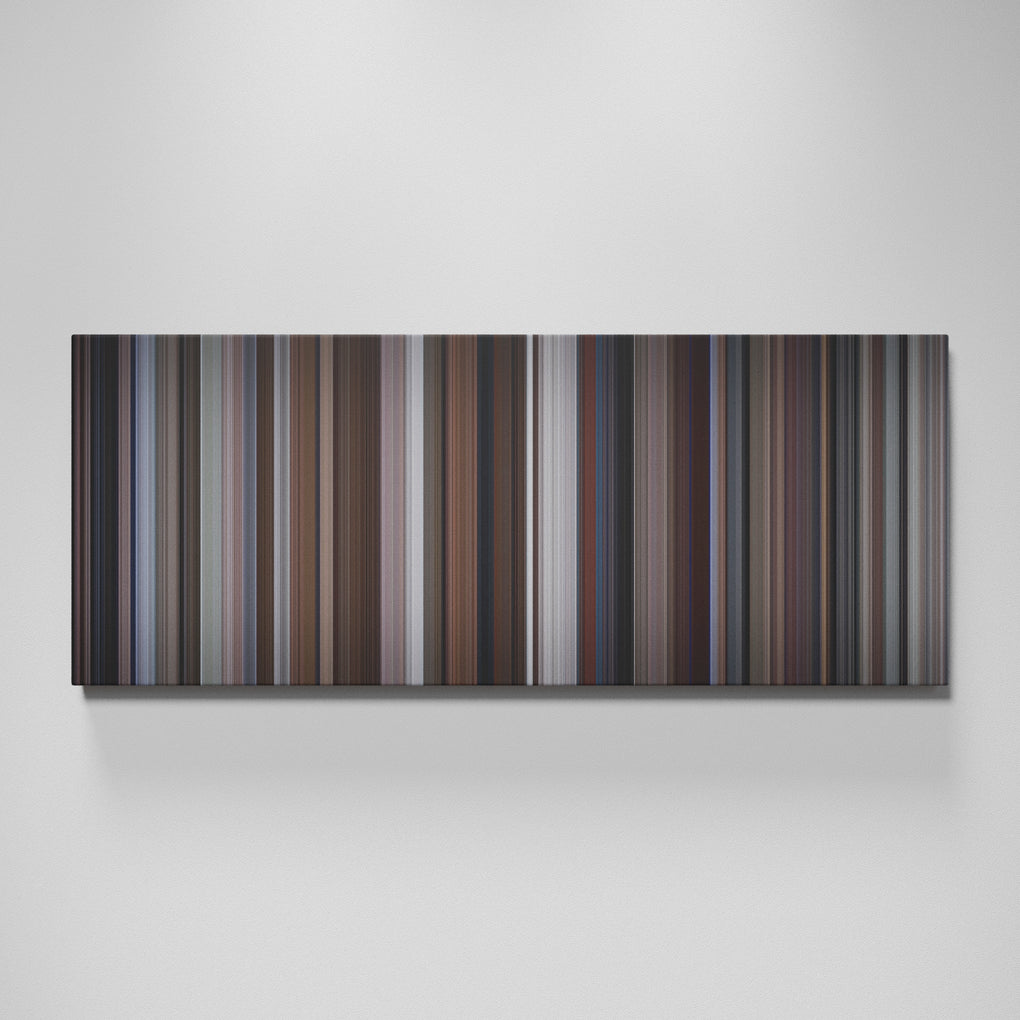 Presenting the ultimate treat for lovers of movies. For the first time ever, we’ve mapped out on canvas the entire DNA from start to finish. Every vertical stripe represents a scene with the color taken as the average of all the frames within that scene.