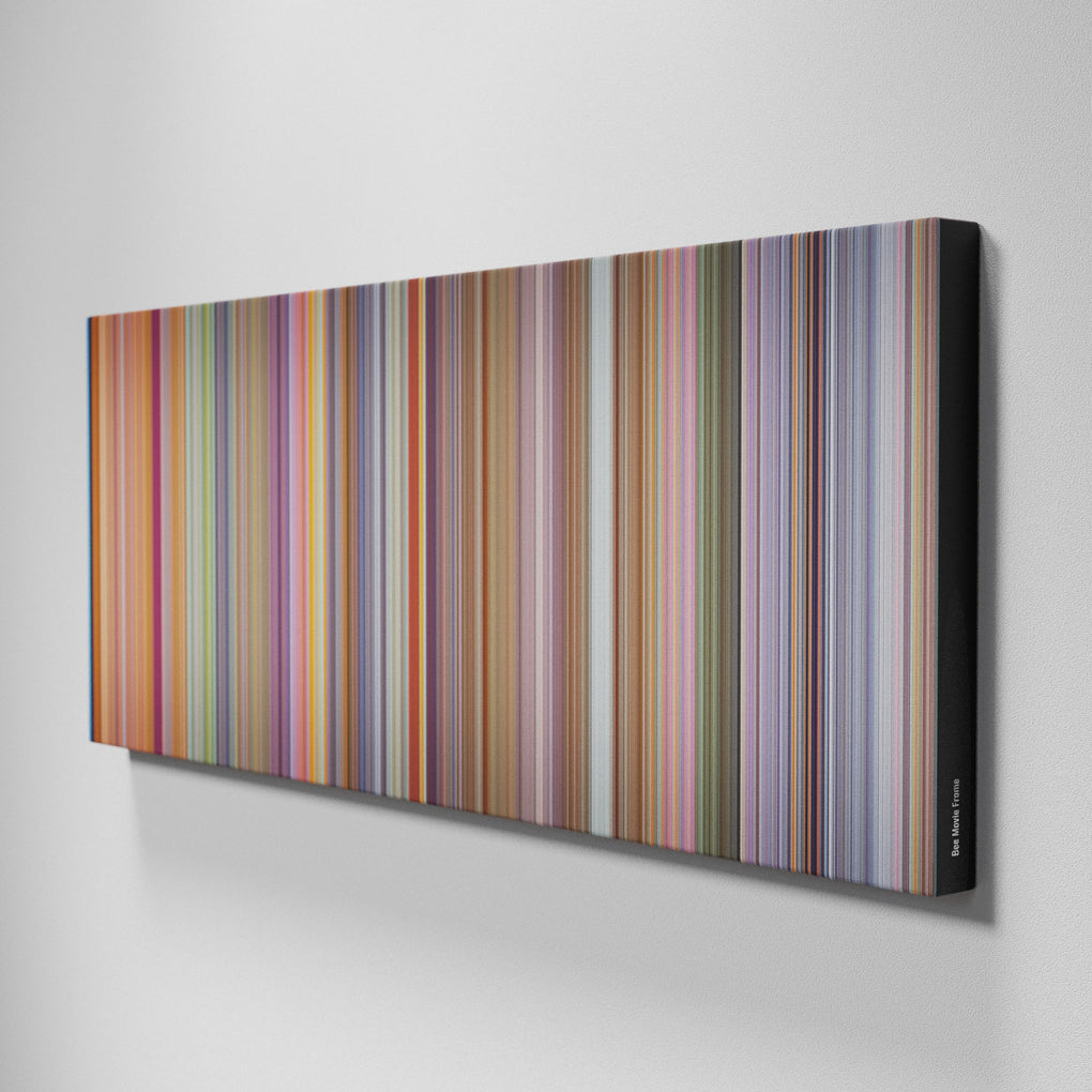 Presenting the ultimate treat for lovers of movies. For the first time ever, we’ve mapped out on canvas the entire DNA from start to finish. Every vertical stripe represents a scene with the color taken as the average of all the frames within that scene.