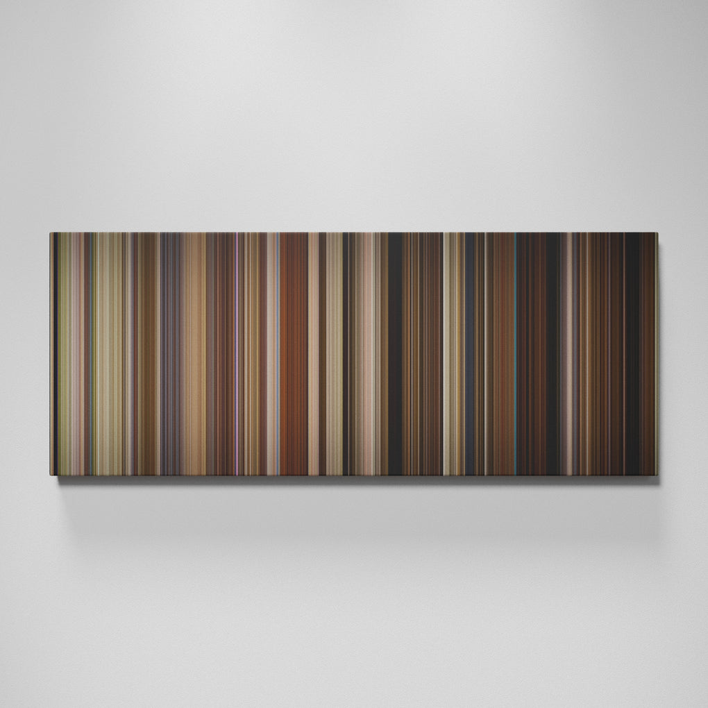 Presenting the ultimate treat for lovers of movies. For the first time ever, we’ve mapped out on canvas the entire DNA from start to finish. Every vertical stripe represents a scene with the color taken as the average of all the frames within that scene.
