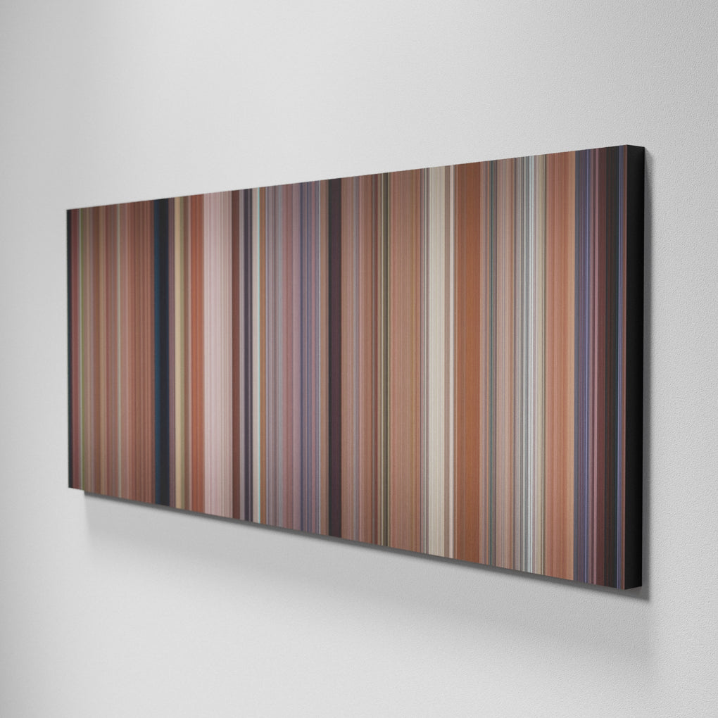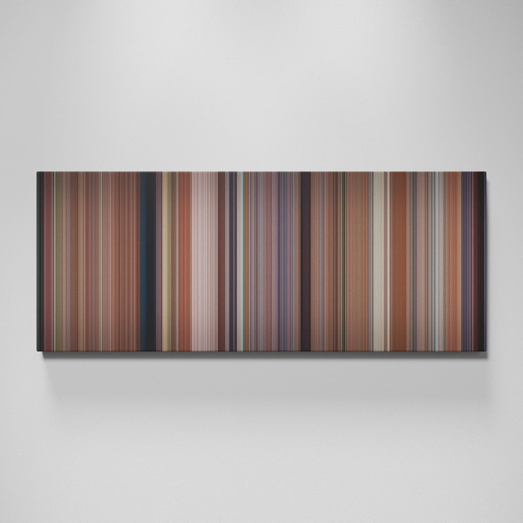 Presenting the ultimate treat for lovers of movies. For the first time ever, we’ve mapped out on canvas the entire DNA from start to finish. Every vertical stripe represents a scene with the color taken as the average of all the frames within that scene.