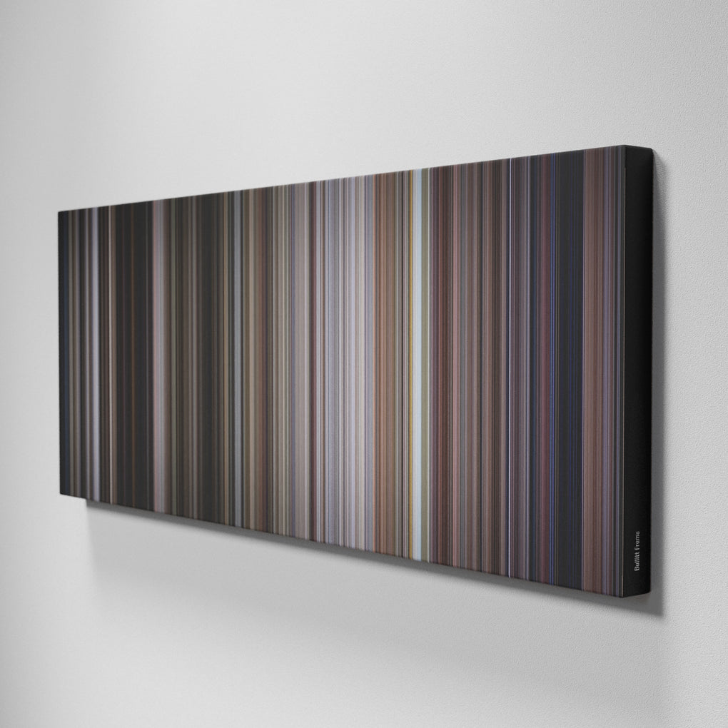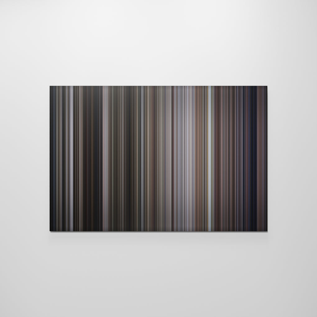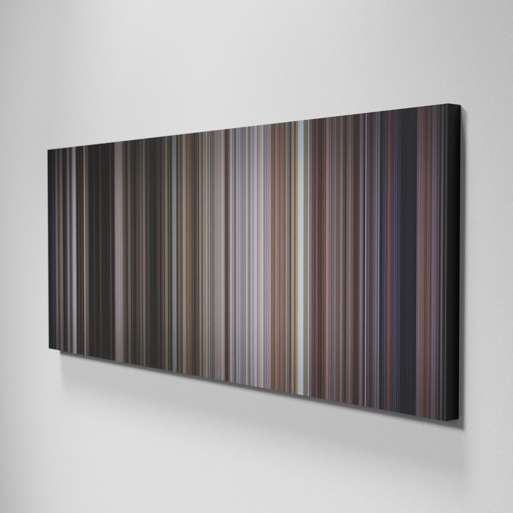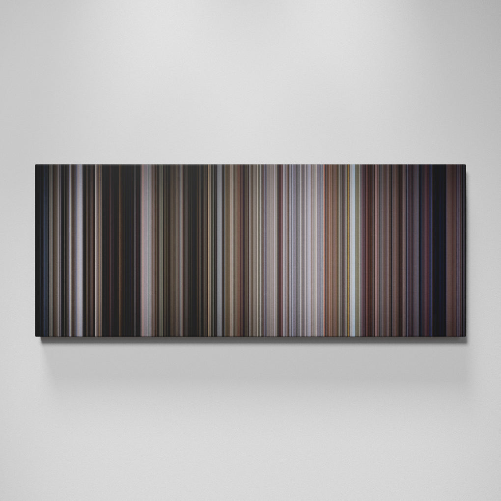 Presenting the ultimate treat for lovers of movies. For the first time ever, we’ve mapped out on canvas the entire DNA from start to finish. Every vertical stripe represents a scene with the color taken as the average of all the frames within that scene.