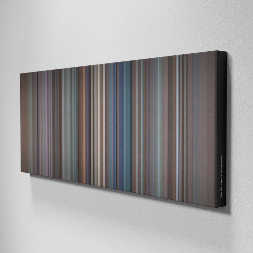 Presenting the ultimate treat for lovers of the Calum Scott - You Are The Reason song. For the first time ever, we've mapped out the entire DNA of the Calum Scott - You Are The Reason musical clip on canvas from start to finish. Every vertical stripe represents a scene from Calum Scott - You Are The Reason video, with the color taken as the average of all the frames within that scene.