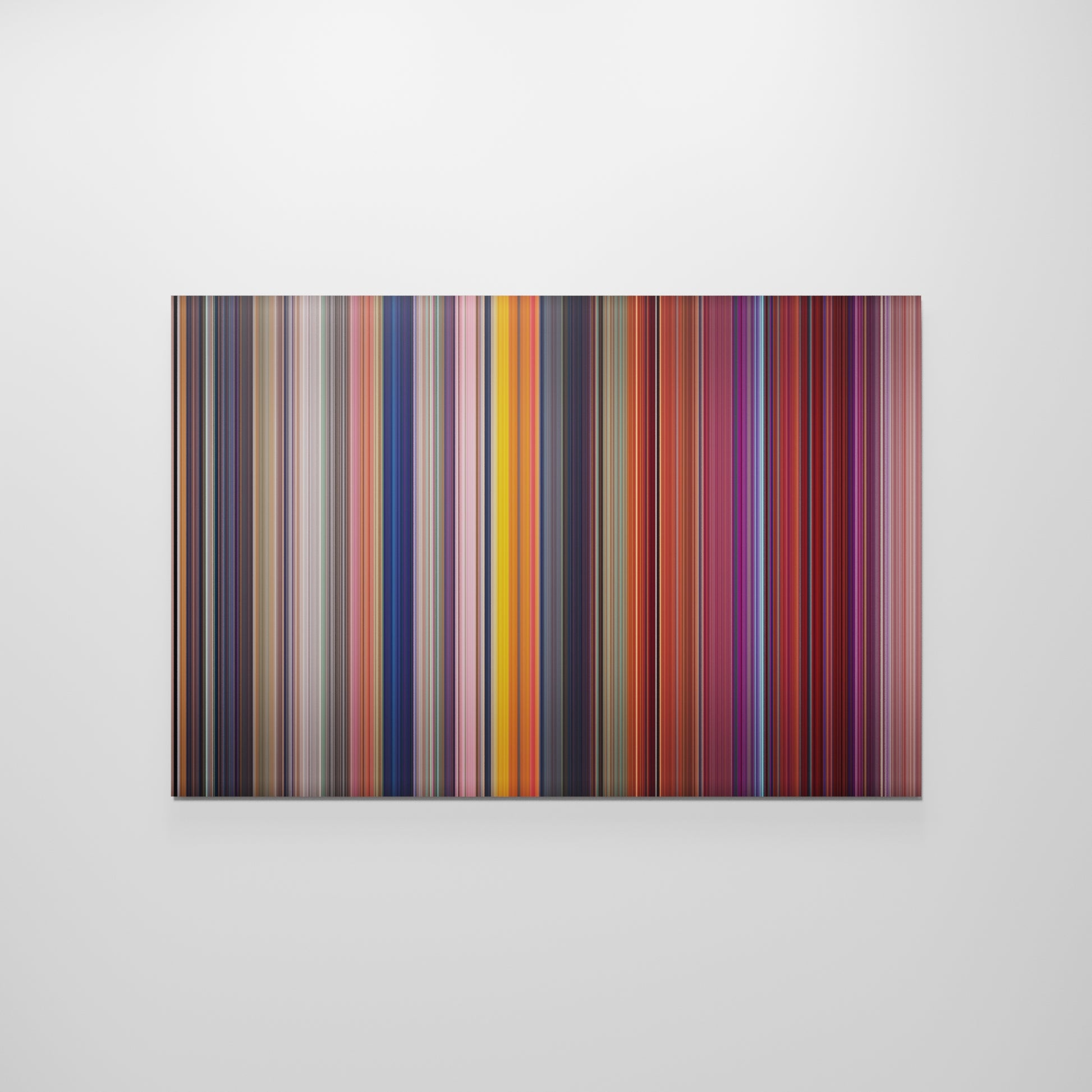 Presenting the ultimate treat for lovers of the movie Cloudy With A Chance Of Meatballs. For the first time ever, we've mapped out on canvas the entire DNA of the film from start to finish. Every vertical stripe represents a scene from Cloudy With A Chance Of Meatballs, with the color taken as the average of all the frames within that scene. When you take a step back, the overall impact is truly stunning! Cinema fans get a permanent reminder of this iconic film, which can be read again and again, just like a book. If you're looking for a truly unique piece of home decor packed with sentimental value, why not try Frome movie art?