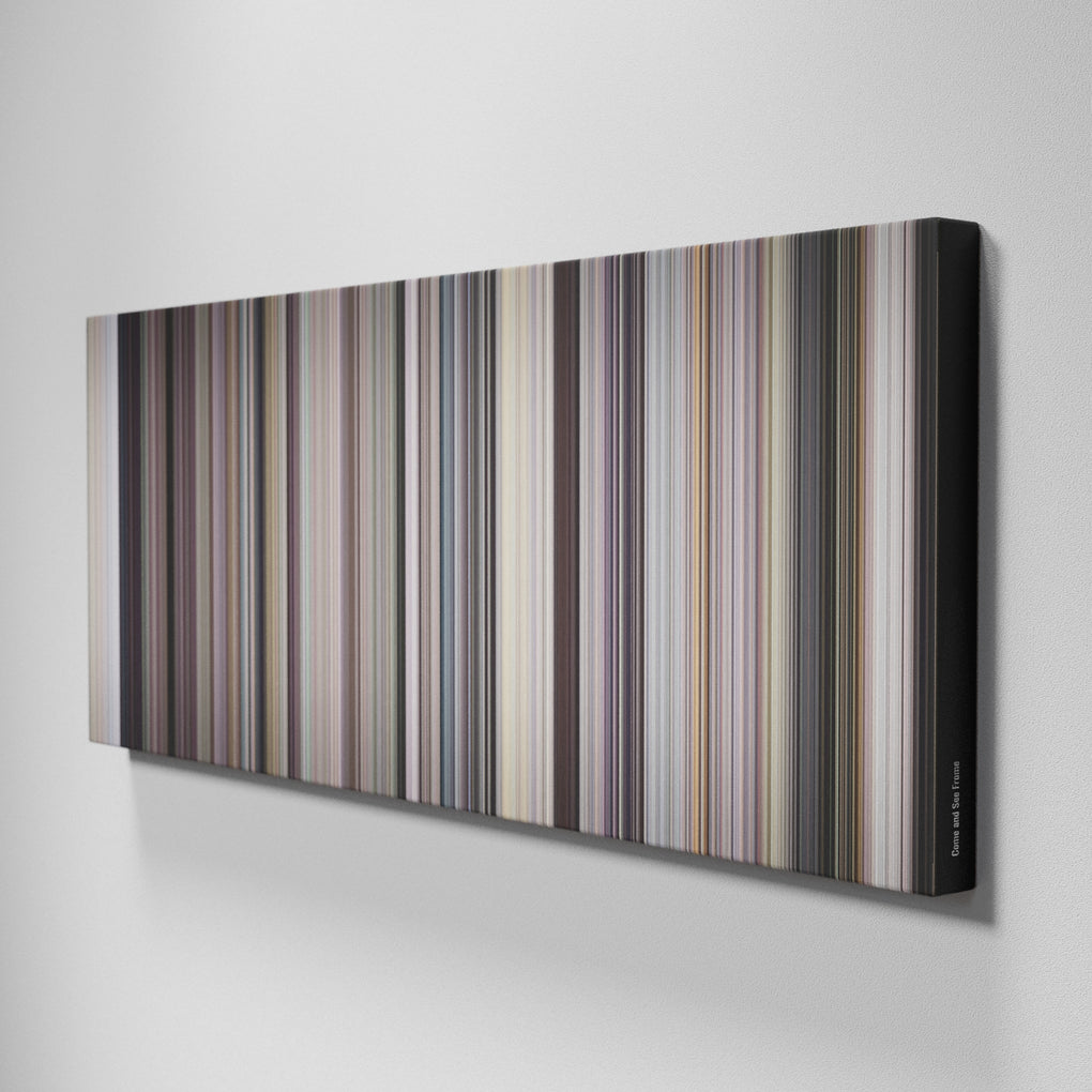 Presenting the ultimate treat for lovers of movies. For the first time ever, we’ve mapped out on canvas the entire DNA from start to finish. Every vertical stripe represents a scene with the color taken as the average of all the frames within that scene.