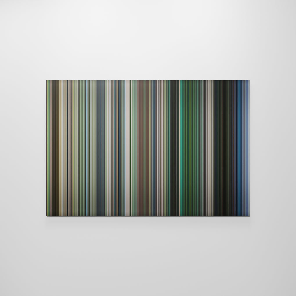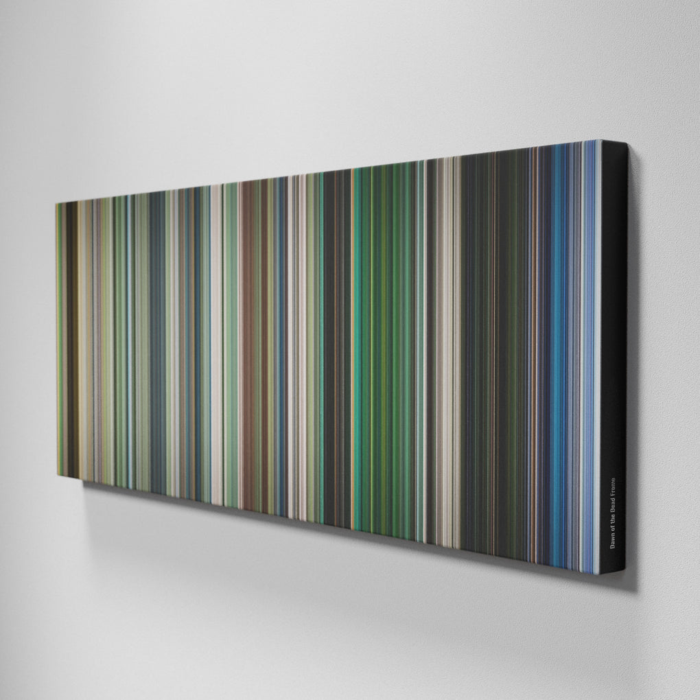Presenting the ultimate treat for lovers of the movie Dawn of the Dead. For the first time ever, we've mapped out on canvas the entire DNA of the film from start to finish. Every vertical stripe represents a scene from Dawn of the Dead, with the color taken as the average of all the frames within that scene. When you take a step back, the overall impact is truly stunning! Cinema fans get a permanent reminder of this iconic film, which can be read again and again, just like a book. If you're looking for a truly unique piece of home decor packed with sentimental value, why not try Frome movie art?