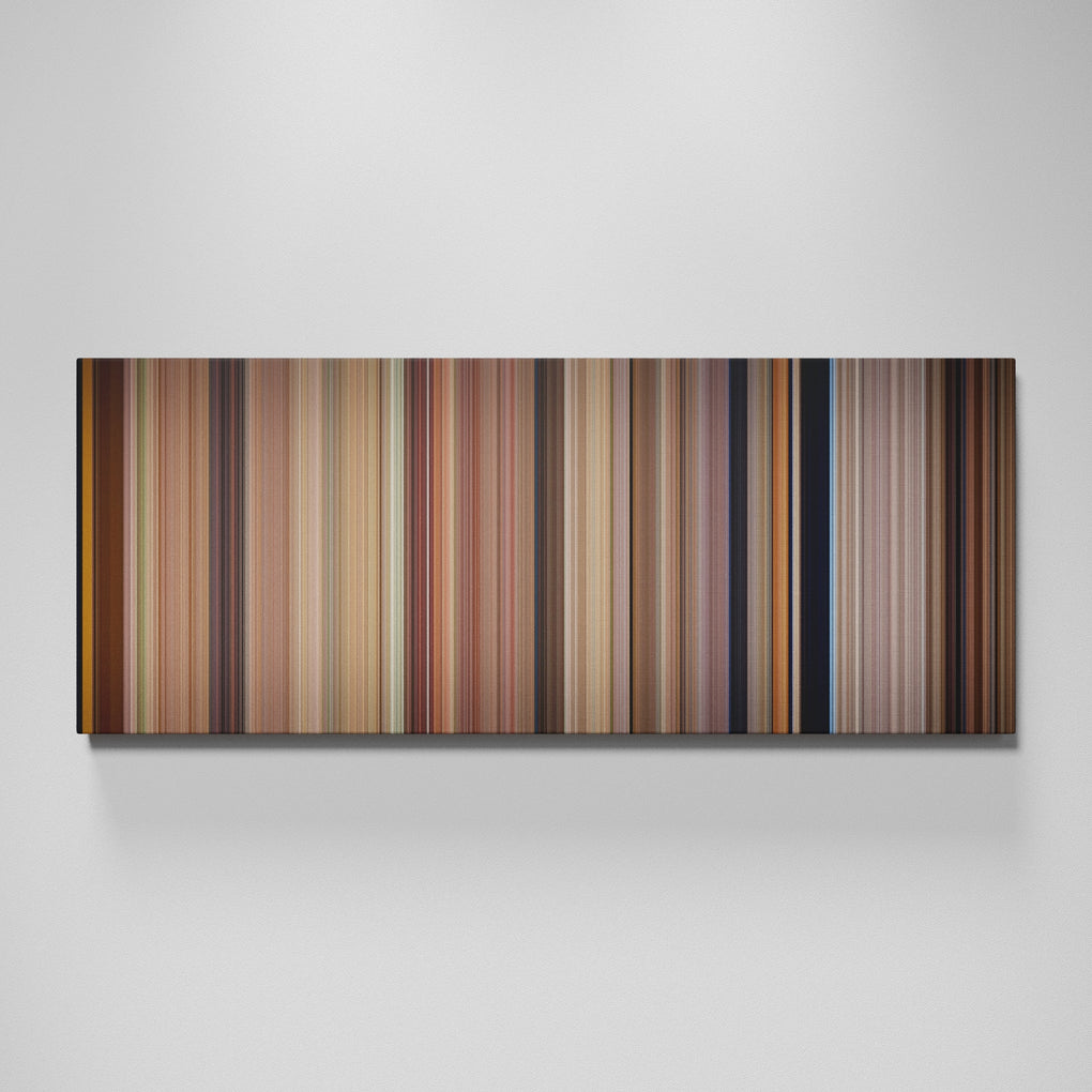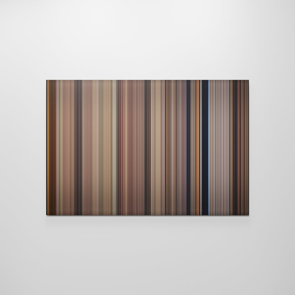 Presenting the ultimate treat for lovers of movies. For the first time ever, we’ve mapped out on canvas the entire DNA from start to finish. Every vertical stripe represents a scene with the color taken as the average of all the frames within that scene.