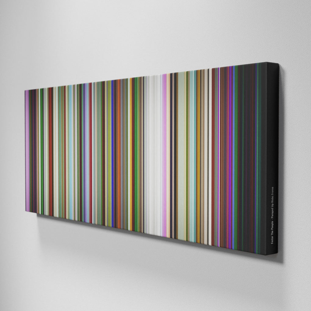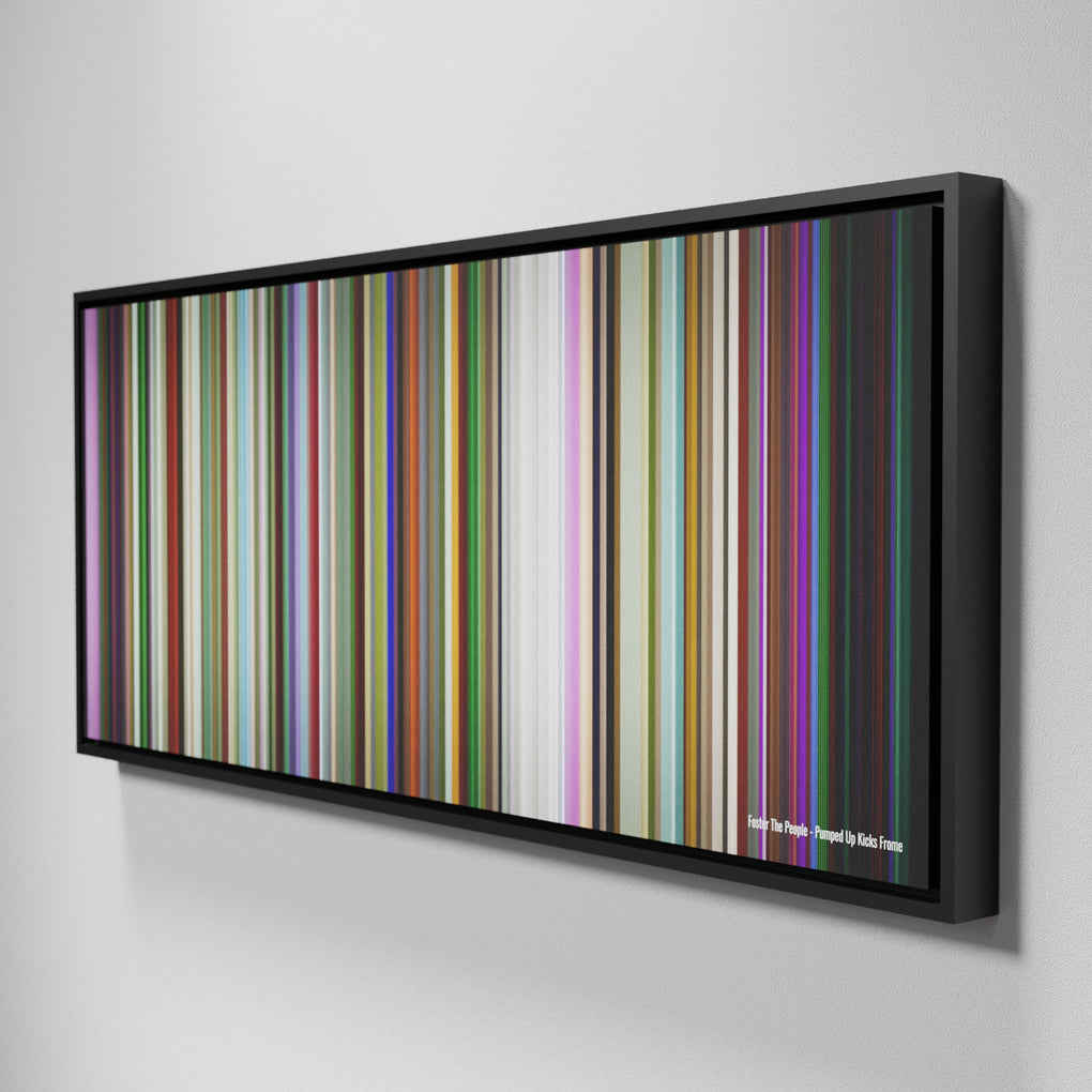 Presenting the ultimate treat for lovers of the Foster The People - Pumped Up Kicks song. For the first time ever, we've mapped out the entire DNA of the Foster The People - Pumped Up Kicks musical clip on canvas from start to finish. Every vertical stripe represents a scene from Foster The People - Pumped Up Kicks video, with the color taken as the average of all the frames within that scene.