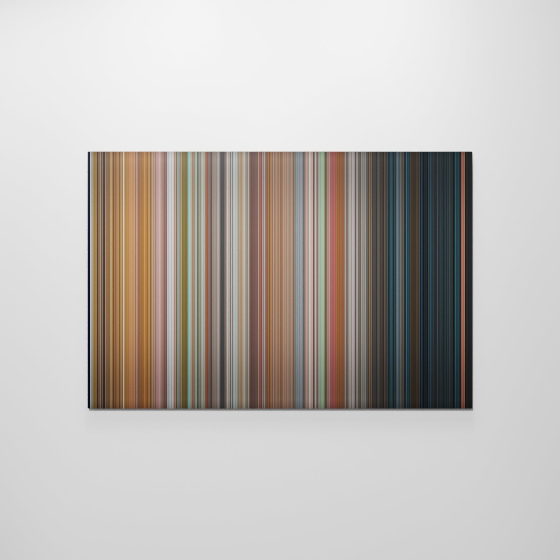 Presenting the ultimate treat for lovers of the movie Friday. For the first time ever, we've mapped out on canvas the entire DNA of the film from start to finish. Every vertical stripe represents a scene from Friday, with the color taken as the average of all the frames within that scene. When you take a step back, the overall impact is truly stunning! Cinema fans get a permanent reminder of this iconic film, which can be read again and again, just like a book. If you're looking for a truly unique piece of home decor packed with sentimental value, why not try Frome movie art?