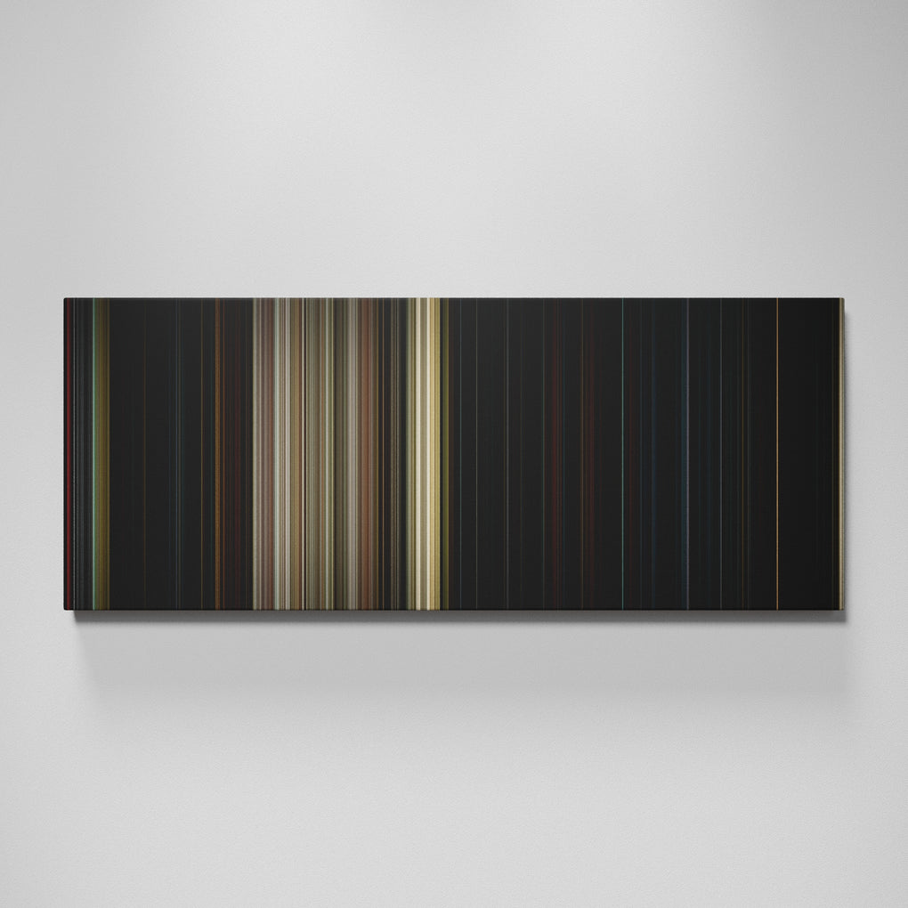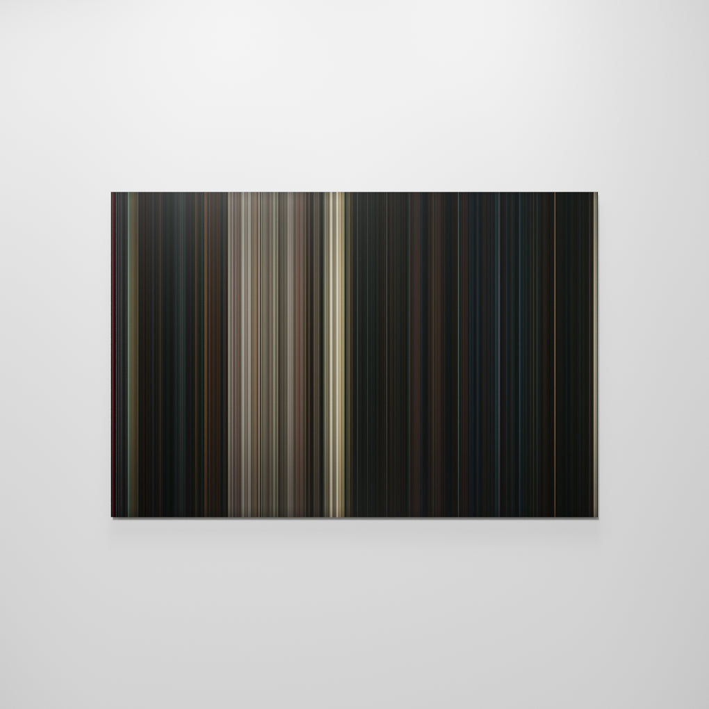 Presenting the ultimate treat for lovers of movies. For the first time ever, we’ve mapped out on canvas the entire DNA from start to finish. Every vertical stripe represents a scene with the color taken as the average of all the frames within that scene.