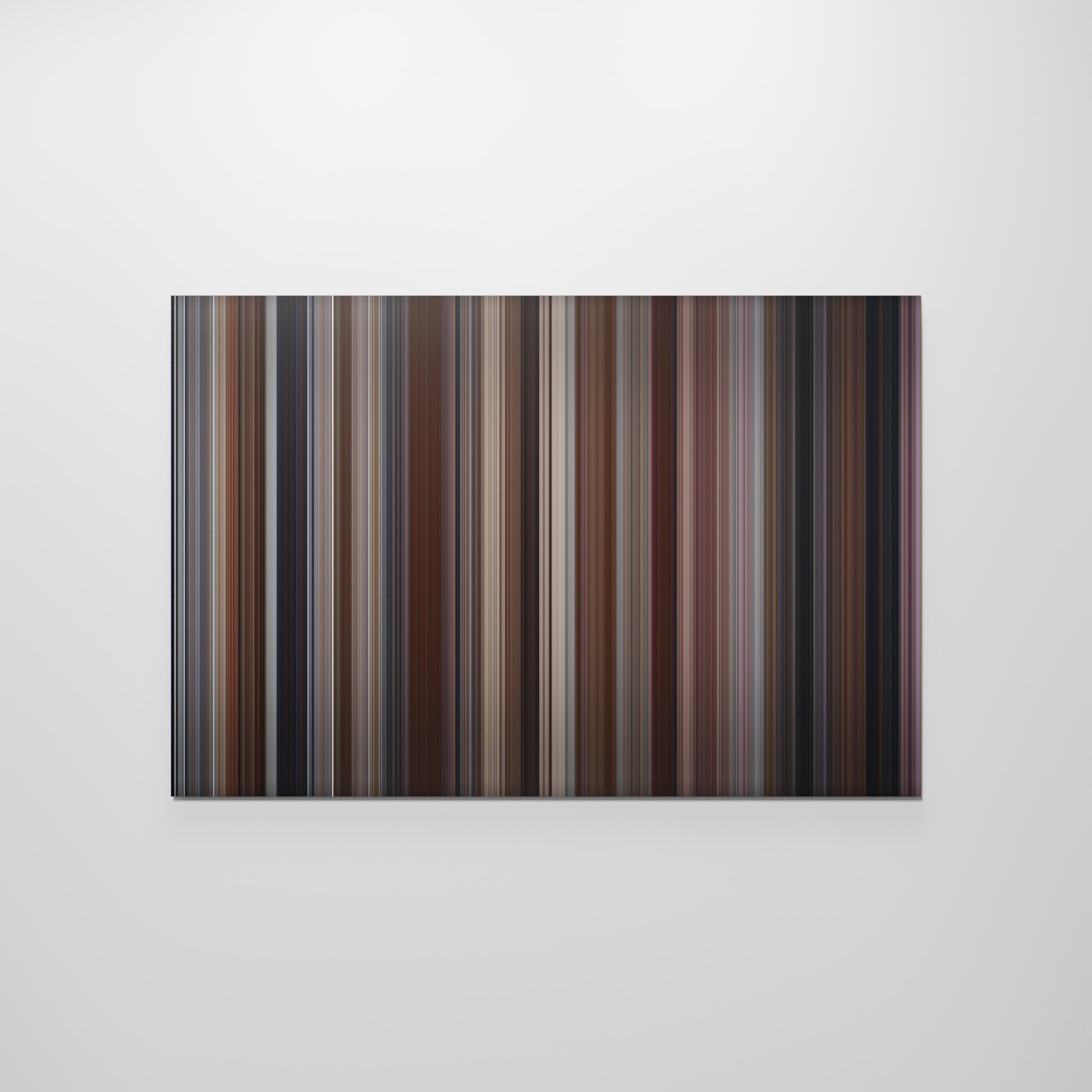 Presenting the ultimate treat for lovers of the movie Ghost (1990). For the first time ever, we've mapped out on canvas the entire DNA of the film from start to finish. Every vertical stripe represents a scene from Ghost (1990), with the color taken as the average of all the frames within that scene. When you take a step back, the overall impact is truly stunning! Cinema fans get a permanent reminder of this iconic film, which can be read again and again, just like a book. If you're looking for a truly unique piece of home decor packed with sentimental value, why not try Frome movie art?