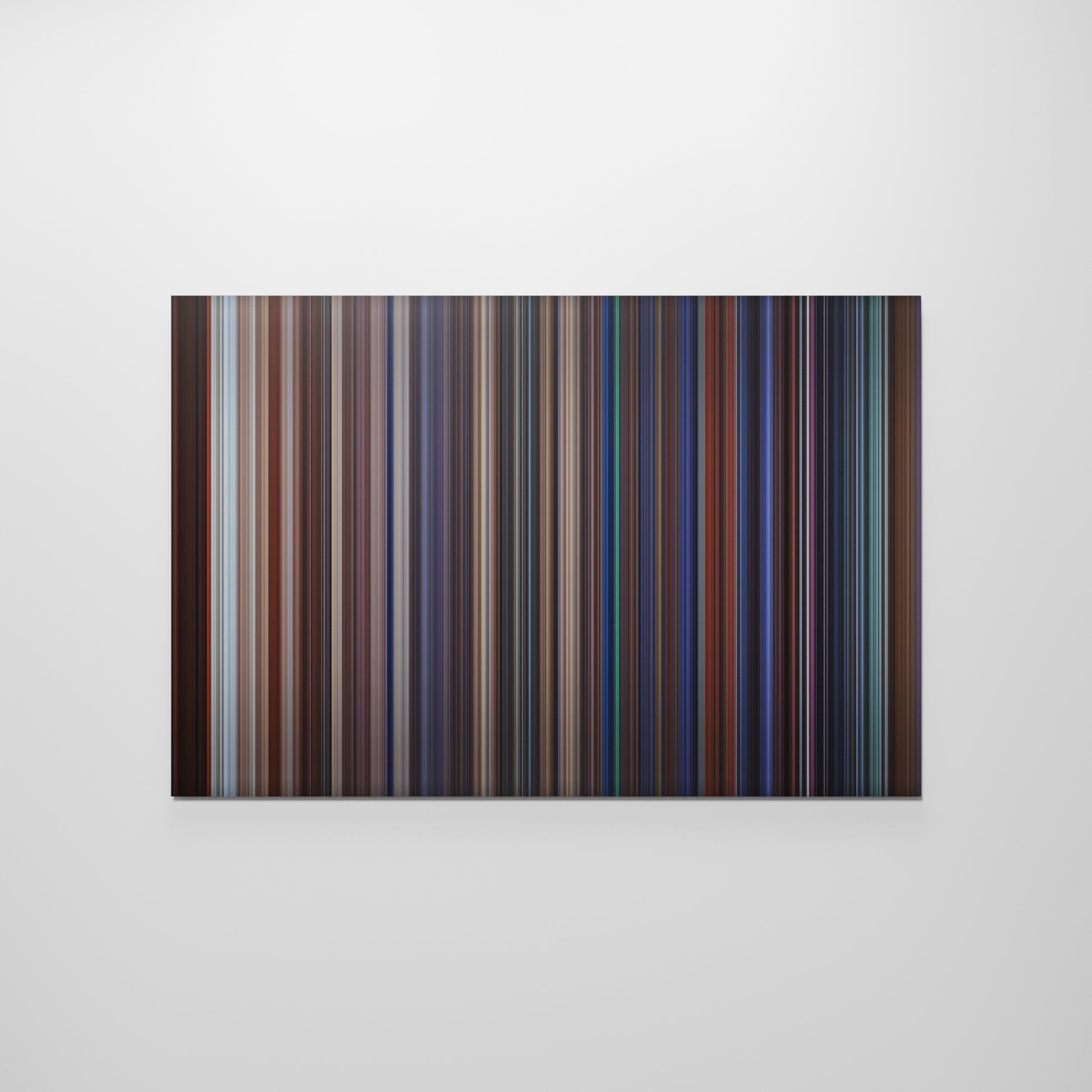 Presenting the ultimate treat for lovers of movies. For the first time ever, we’ve mapped out on canvas the entire DNA from start to finish. Every vertical stripe represents a scene with the color taken as the average of all the frames within that scene.