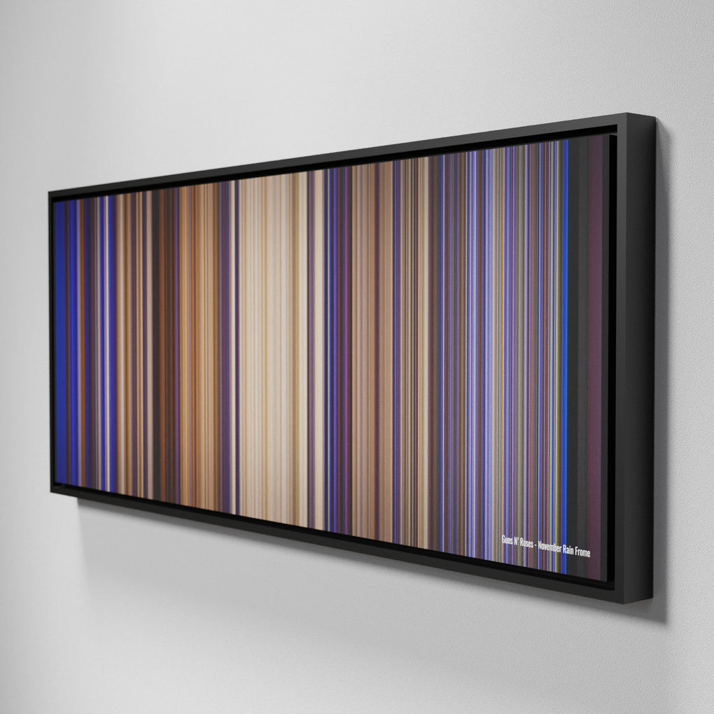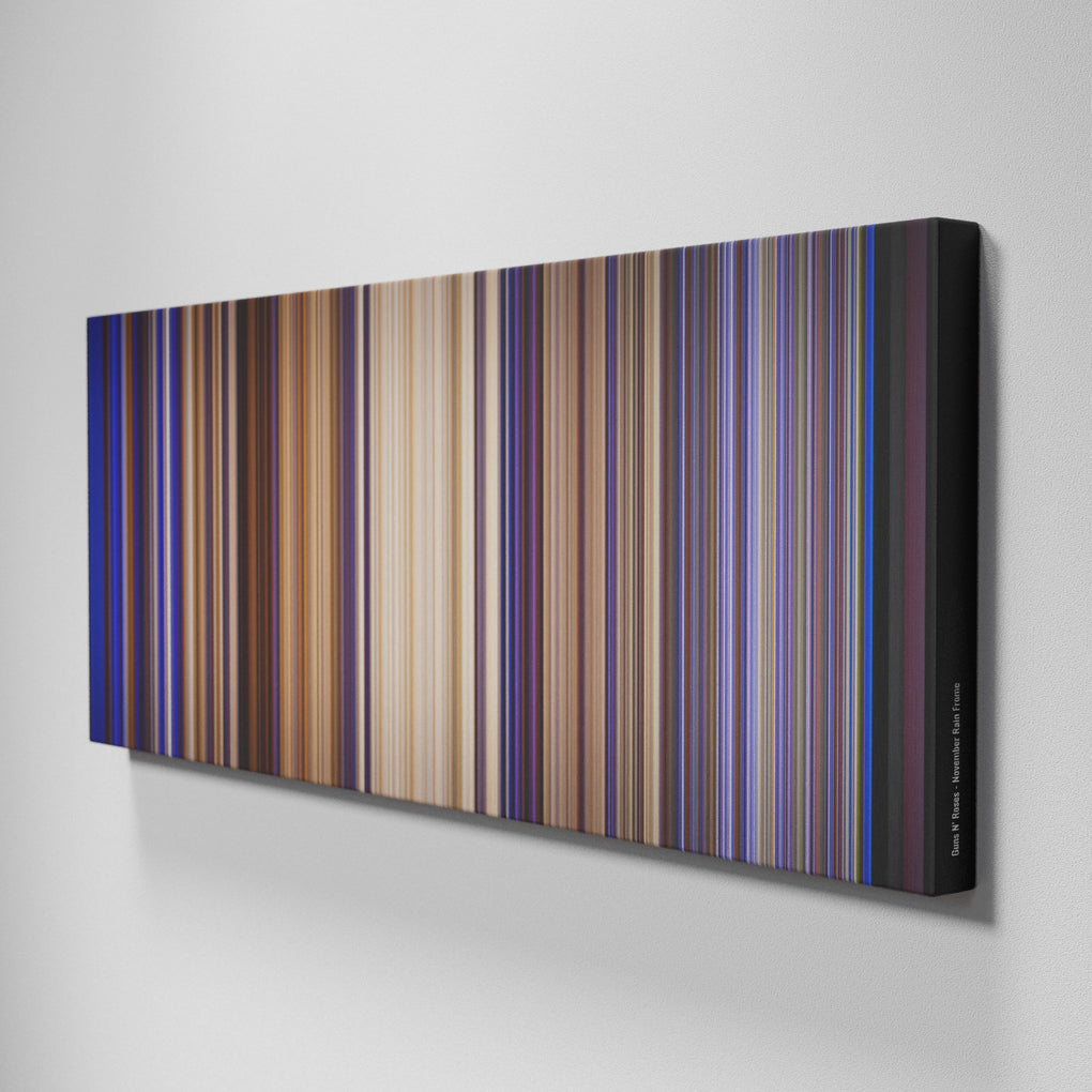 Presenting the ultimate treat for lovers of the Guns N' Roses - November Rain song. For the first time ever, we've mapped out the entire DNA of the Guns N' Roses - November Rain musical clip on canvas from start to finish. Every vertical stripe represents a scene from Guns N' Roses - November Rain video, with the color taken as the average of all the frames within that scene.