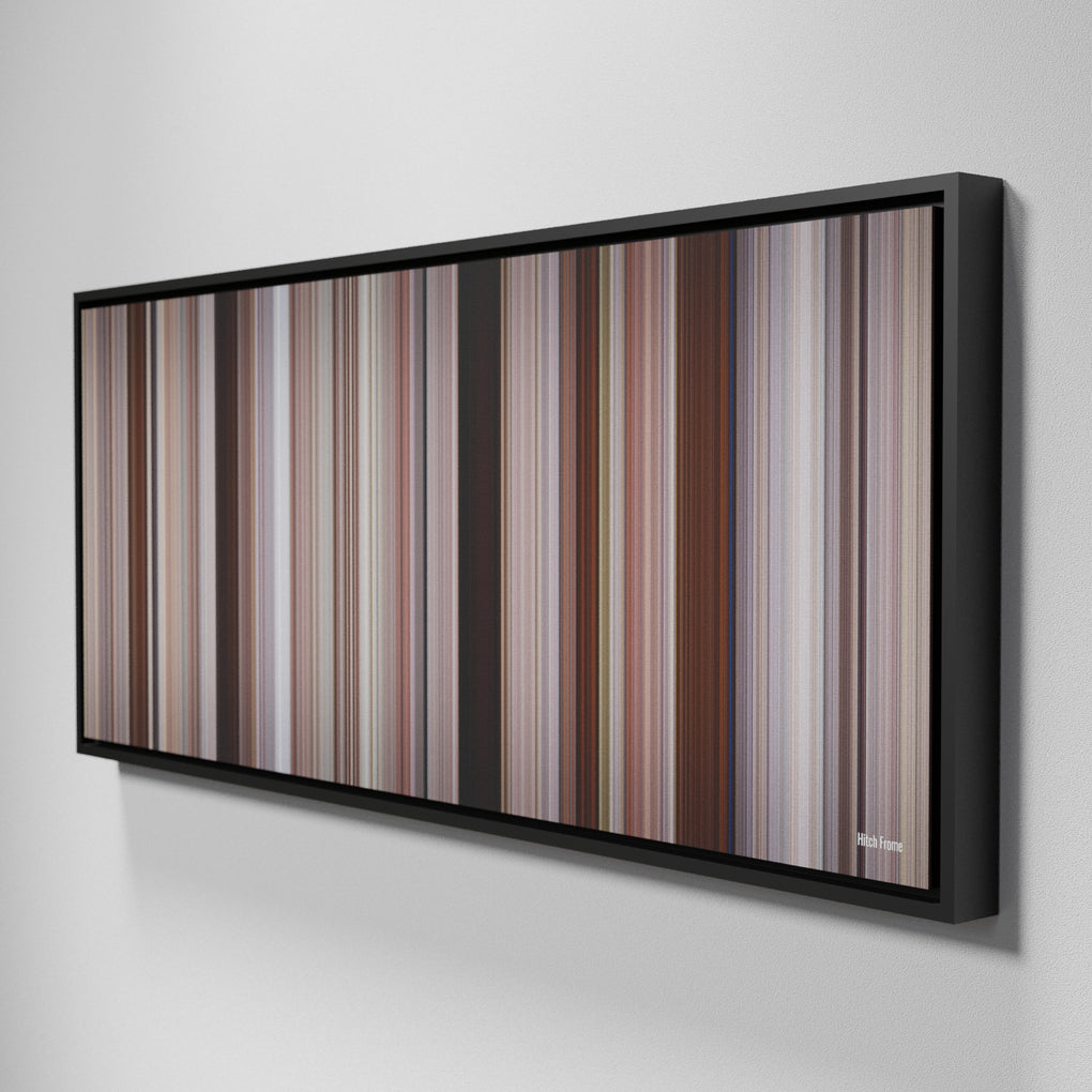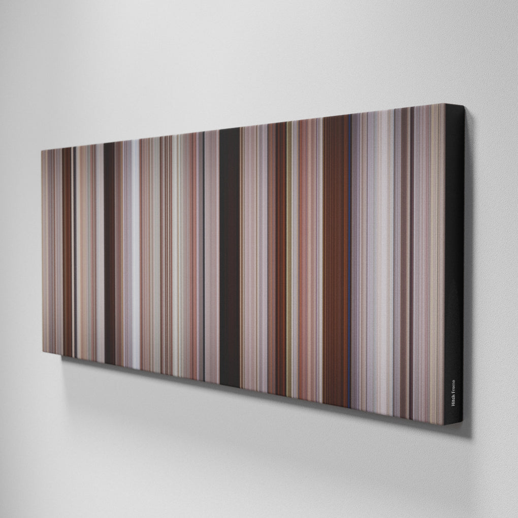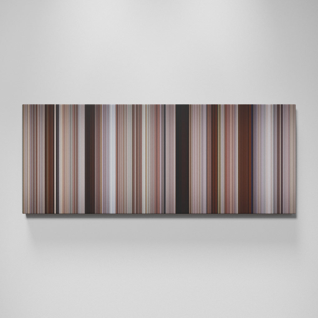 Presenting the ultimate treat for lovers of movies. For the first time ever, we’ve mapped out on canvas the entire DNA from start to finish. Every vertical stripe represents a scene with the color taken as the average of all the frames within that scene.