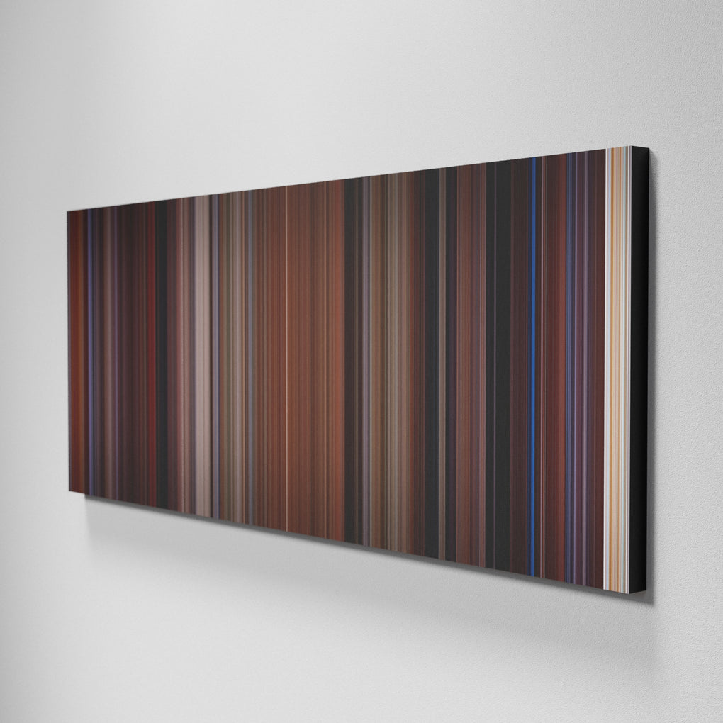 Presenting the ultimate treat for lovers of movies. For the first time ever, we’ve mapped out on canvas the entire DNA from start to finish. Every vertical stripe represents a scene with the color taken as the average of all the frames within that scene.