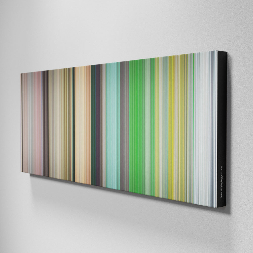 Presenting the ultimate treat for lovers of movies. For the first time ever, we’ve mapped out on canvas the entire DNA from start to finish. Every vertical stripe represents a scene with the color taken as the average of all the frames within that scene.