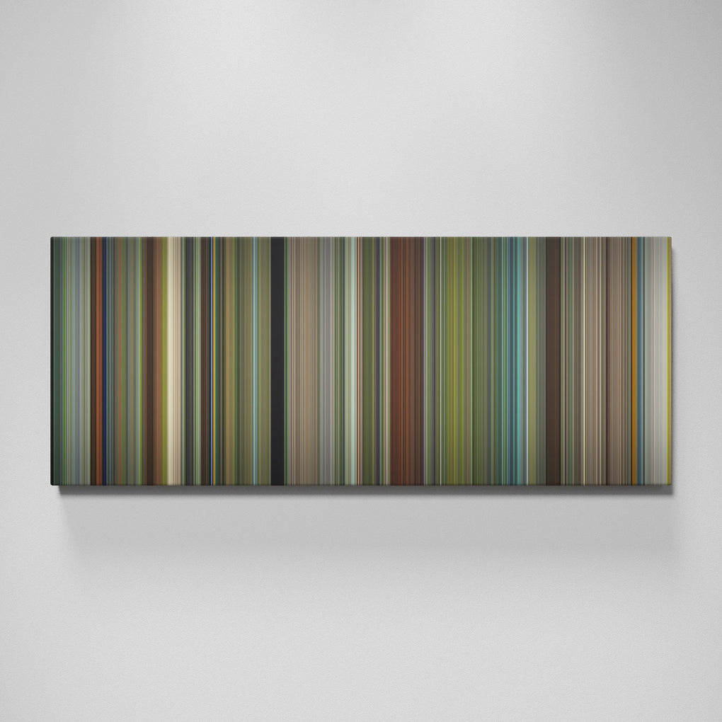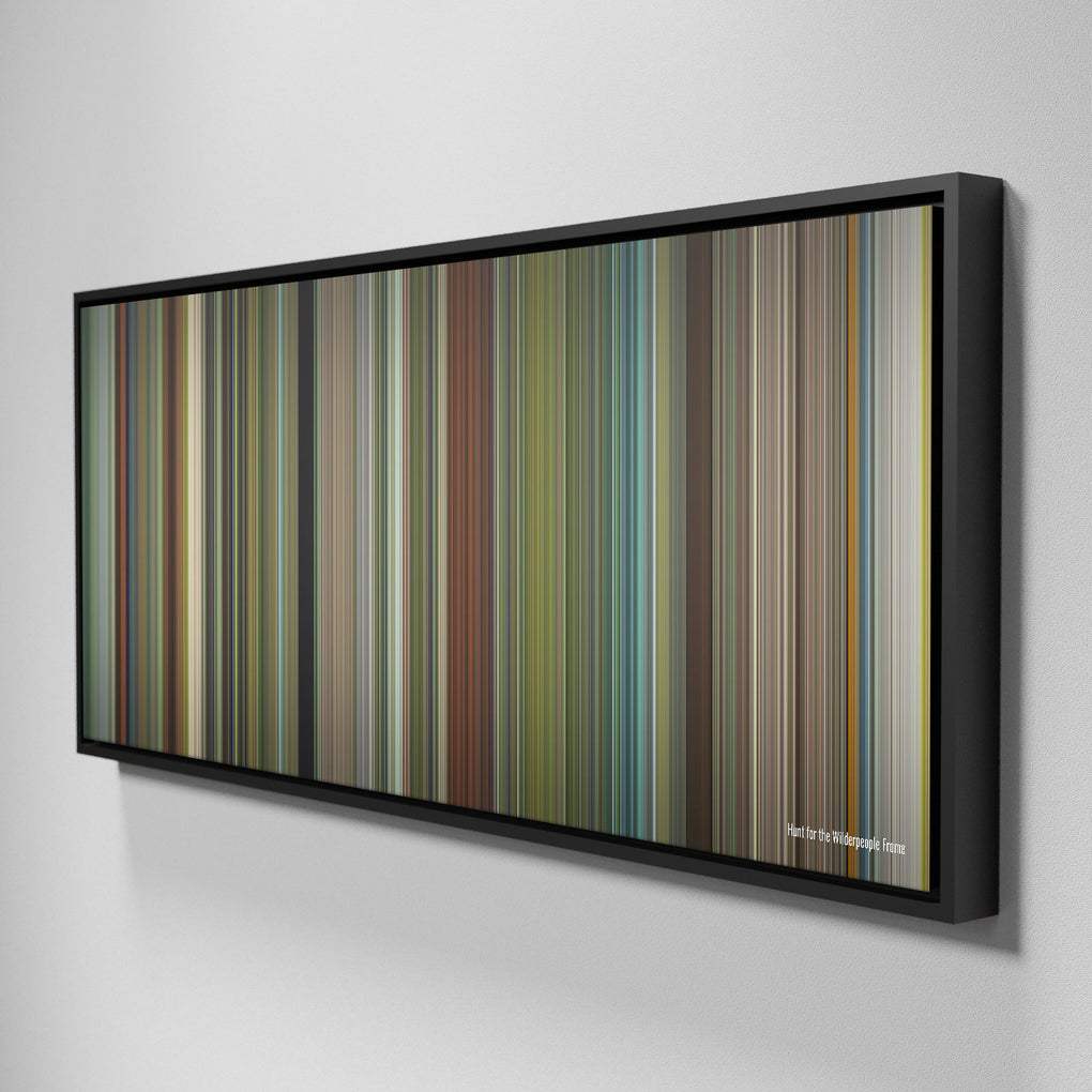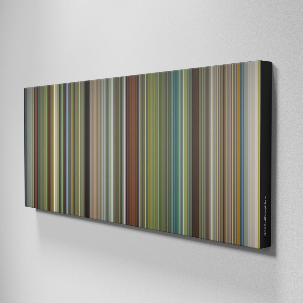 Presenting the ultimate treat for lovers of the Hunt for the Wilderpeople movie. For the first time ever, we've mapped out the entire DNA of the Hunt for the Wilderpeople movie on canvas from start to finish. Every vertical stripe represents a scene from Hunt for the Wilderpeople movie, with the color taken as the average of all the frames within that scene.
