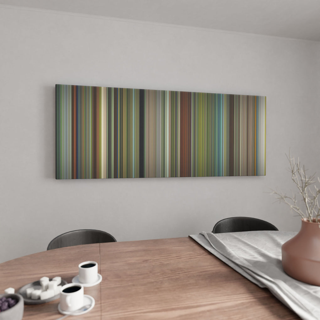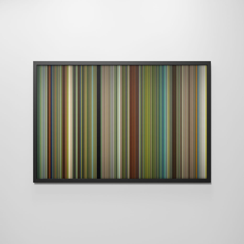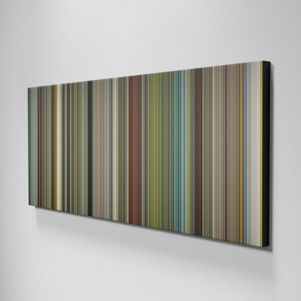 Presenting the ultimate treat for lovers of the Hunt for the Wilderpeople movie. For the first time ever, we've mapped out the entire DNA of the Hunt for the Wilderpeople movie on canvas from start to finish. Every vertical stripe represents a scene from Hunt for the Wilderpeople movie, with the color taken as the average of all the frames within that scene.
