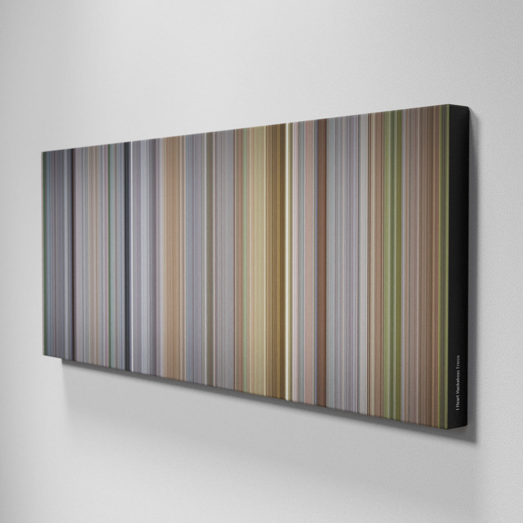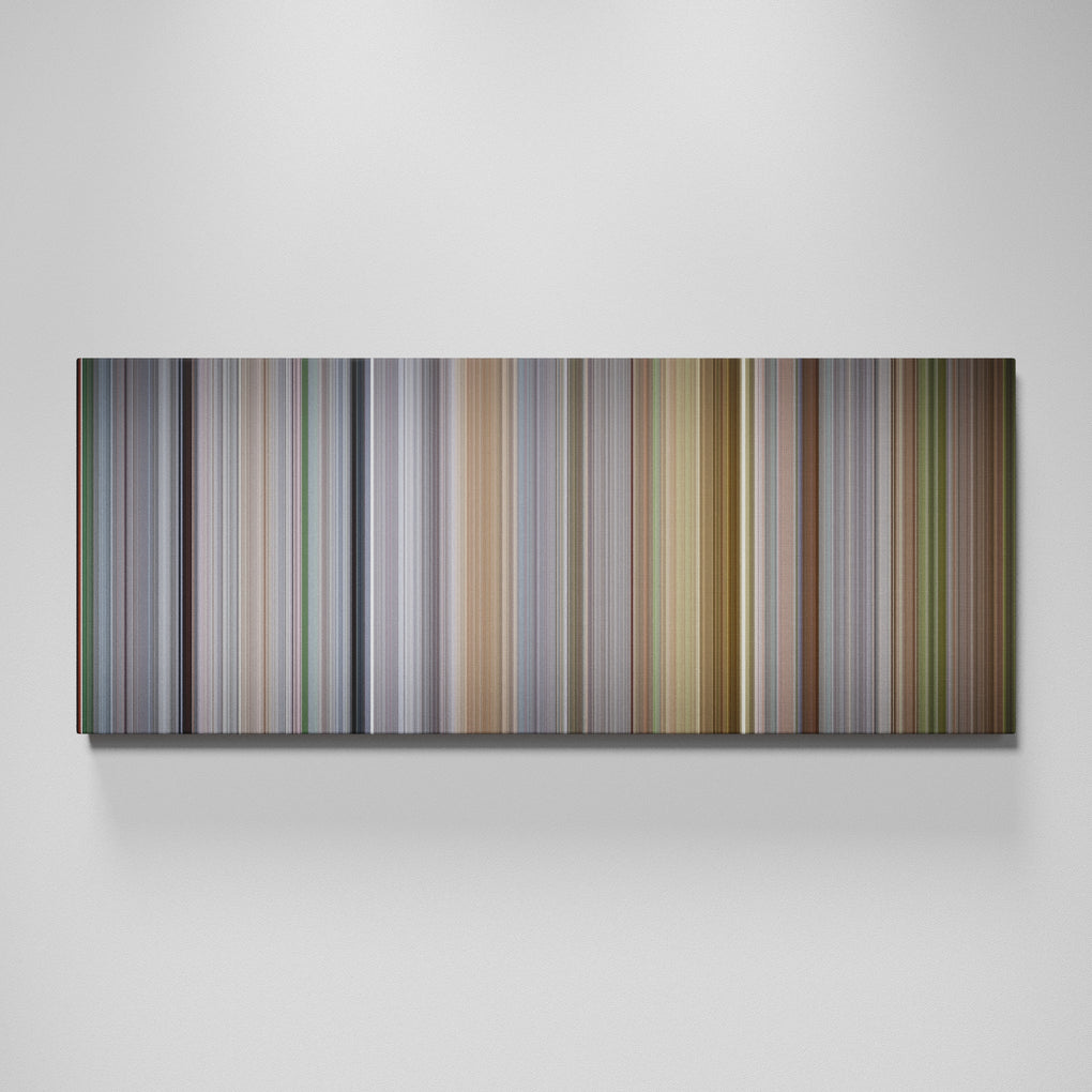Presenting the ultimate treat for lovers of movies. For the first time ever, we’ve mapped out on canvas the entire DNA from start to finish. Every vertical stripe represents a scene with the color taken as the average of all the frames within that scene.