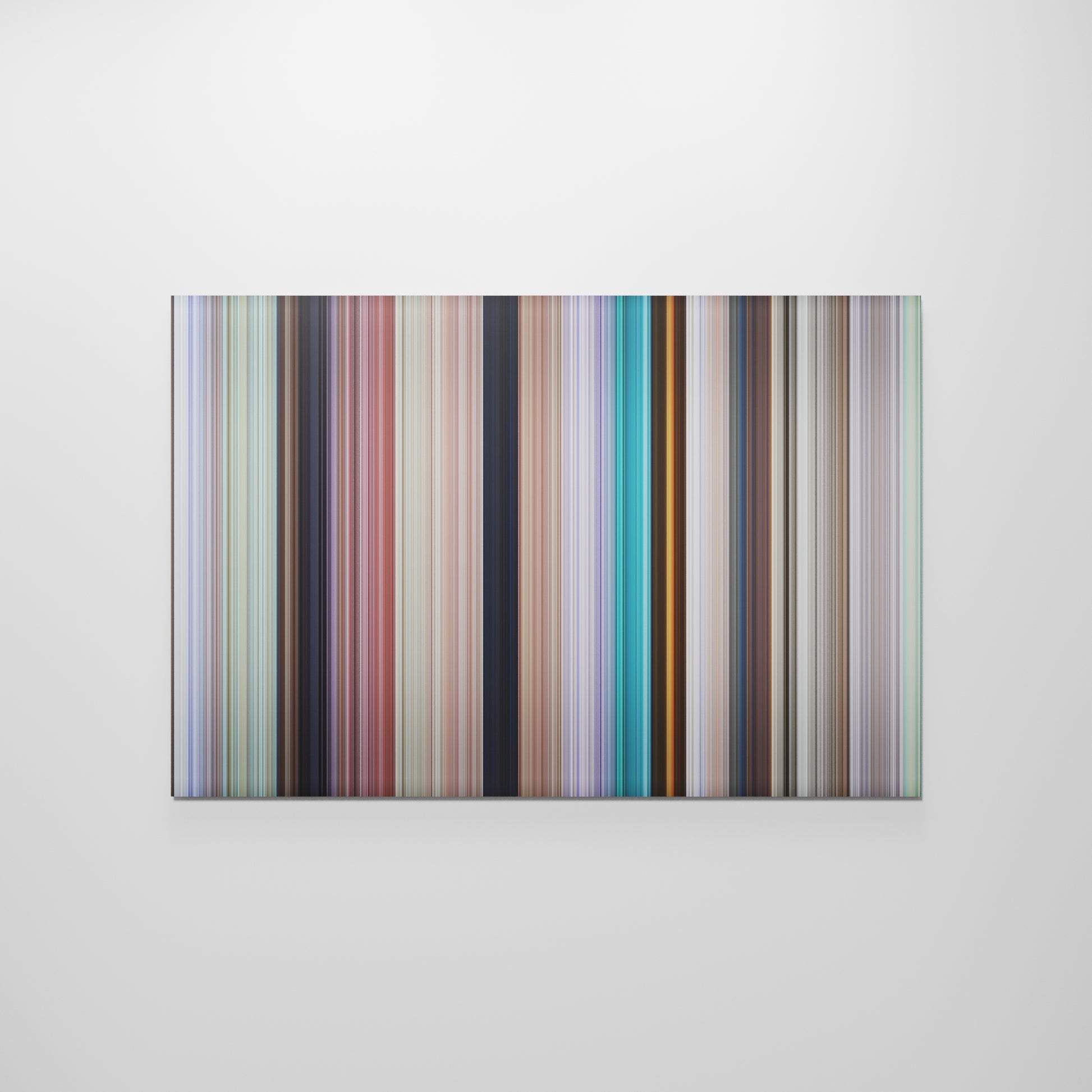 Presenting the ultimate treat for lovers of the movie Ice Age. For the first time ever, we've mapped out on canvas the entire DNA of the film from start to finish. Every vertical stripe represents a scene from Ice Age, with the color taken as the average of all the frames within that scene. When you take a step back, the overall impact is truly stunning! Cinema fans get a permanent reminder of this iconic film, which can be read again and again, just like a book. If you're looking for a truly unique piece of home decor packed with sentimental value, why not try Frome movie art?