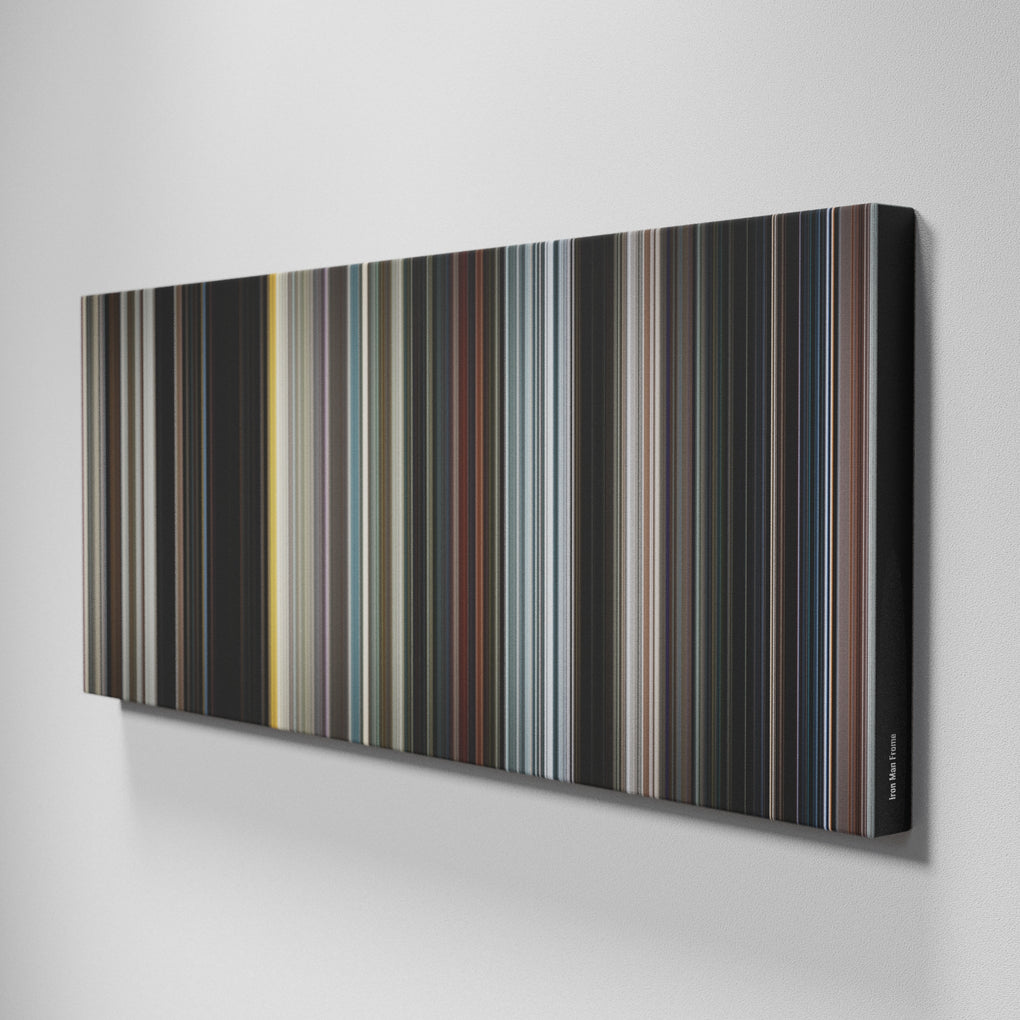 Presenting the ultimate treat for lovers of movies. For the first time ever, we’ve mapped out on canvas the entire DNA from start to finish. Every vertical stripe represents a scene with the color taken as the average of all the frames within that scene.