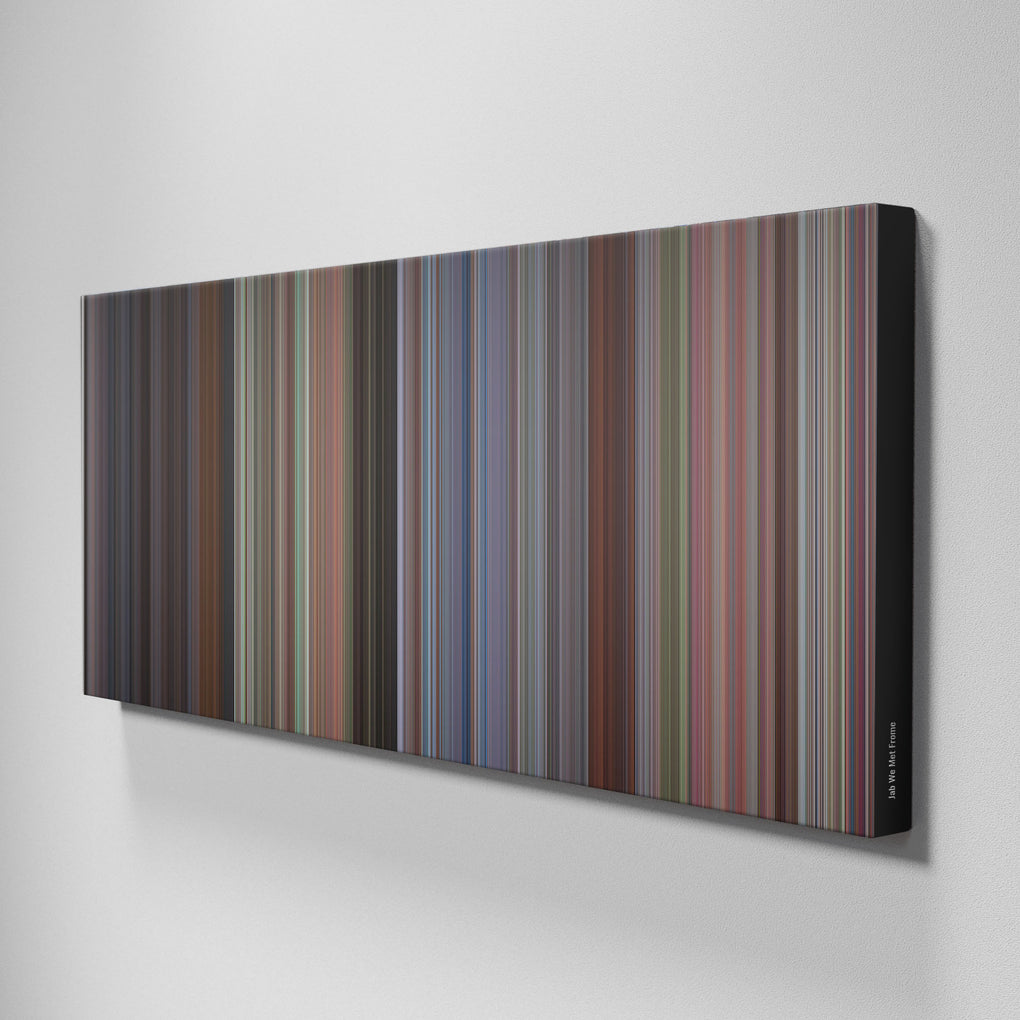 Presenting the ultimate treat for lovers of the Jab We Met movie. For the first time ever, we've mapped out the entire DNA of the Jab We Met movie on canvas from start to finish. Every vertical stripe represents a scene from Jab We Met movie, with the color taken as the average of all the frames within that scene.