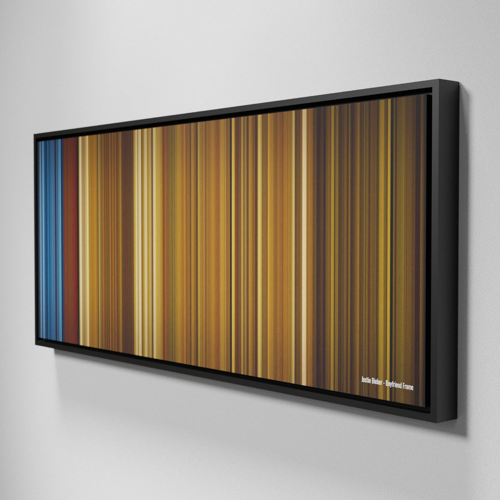 Presenting the ultimate treat for lovers of the Justin Bieber - Boyfriend song. For the first time ever, we've mapped out the entire DNA of the Justin Bieber - Boyfriend musical clip on canvas from start to finish. Every vertical stripe represents a scene from Justin Bieber - Boyfriend video, with the color taken as the average of all the frames within that scene.