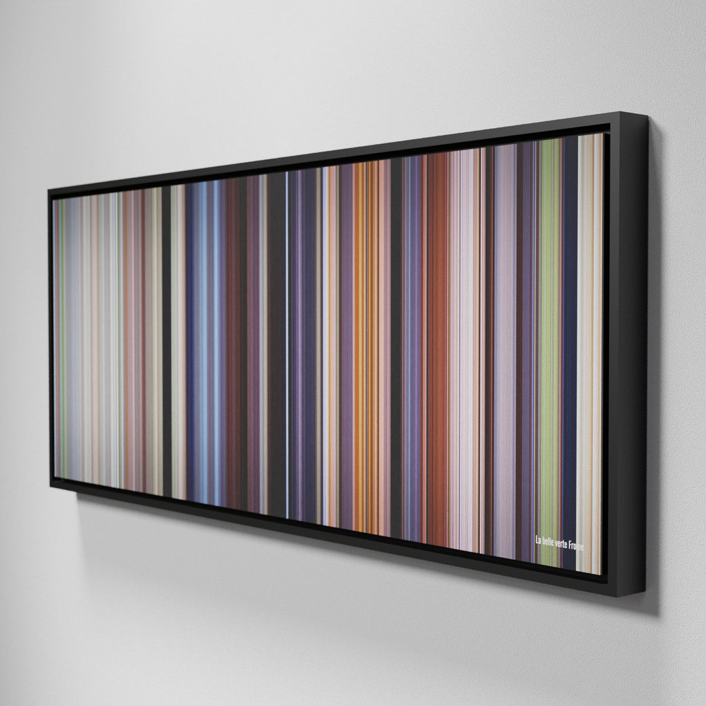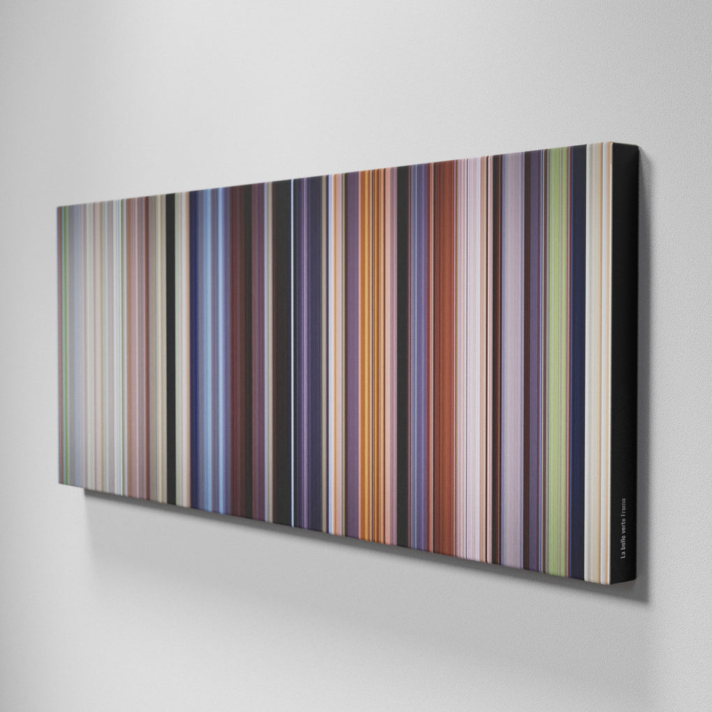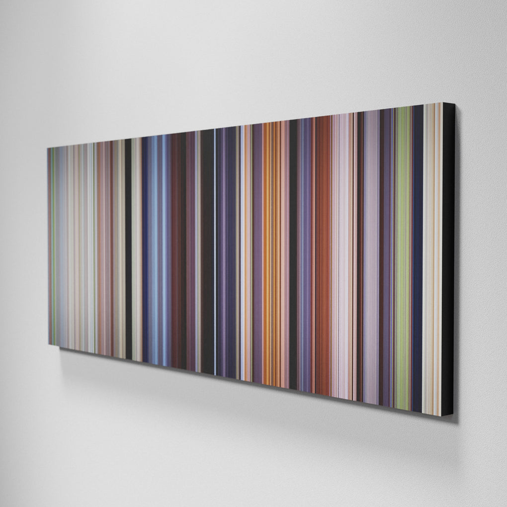 Presenting the ultimate treat for lovers of movies. For the first time ever, we’ve mapped out on canvas the entire DNA from start to finish. Every vertical stripe represents a scene with the color taken as the average of all the frames within that scene.