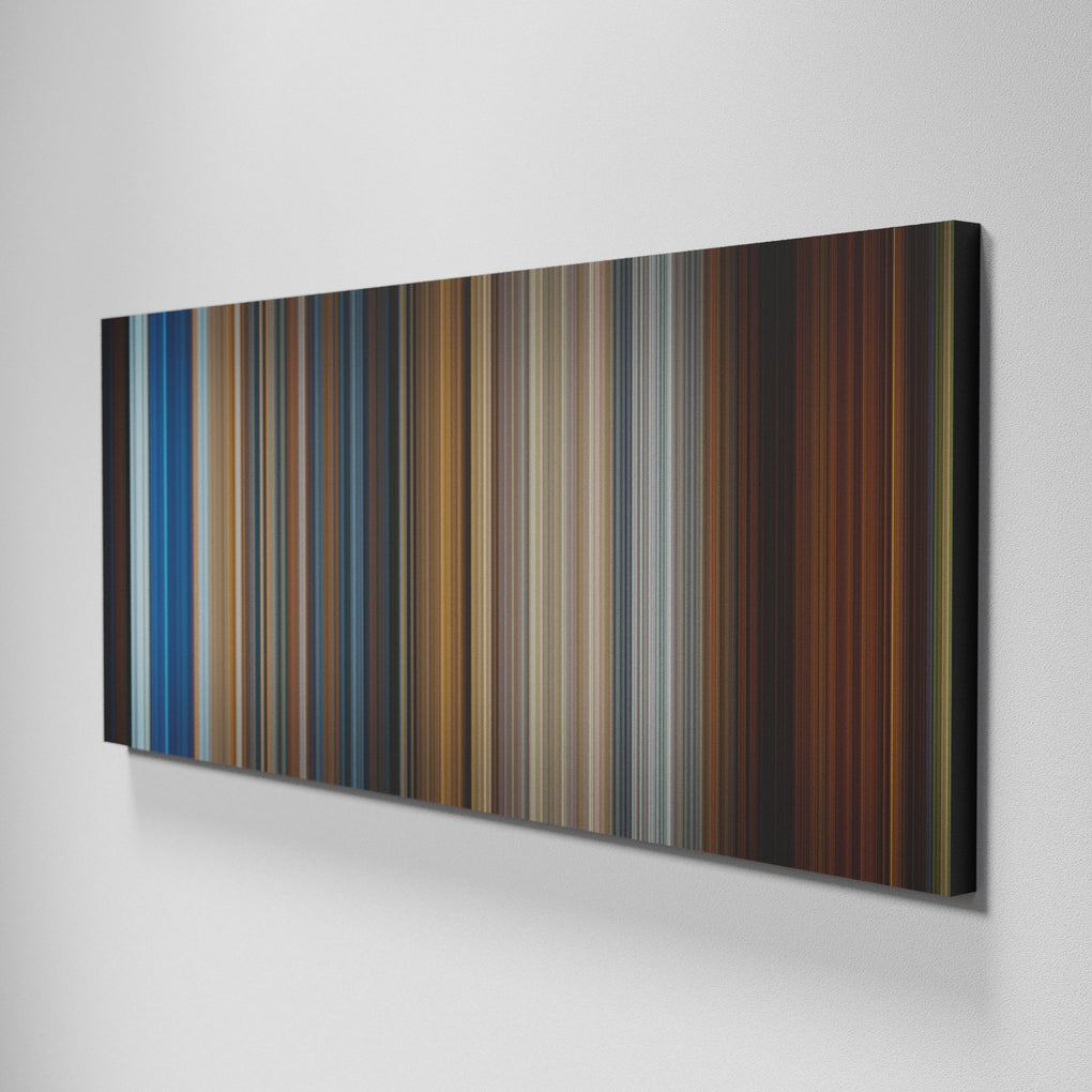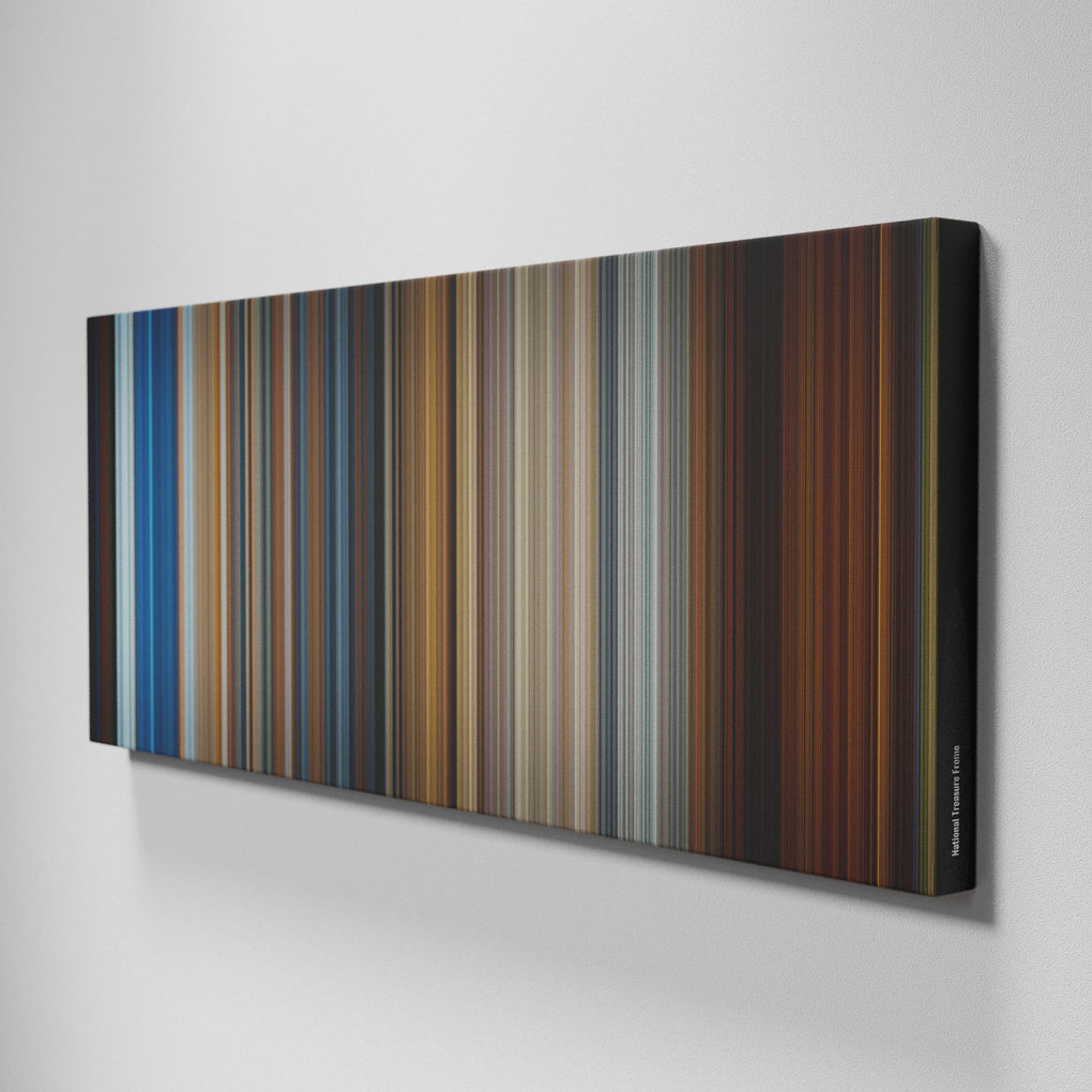Presenting the ultimate treat for lovers of movies. For the first time ever, we’ve mapped out on canvas the entire DNA from start to finish. Every vertical stripe represents a scene with the color taken as the average of all the frames within that scene.