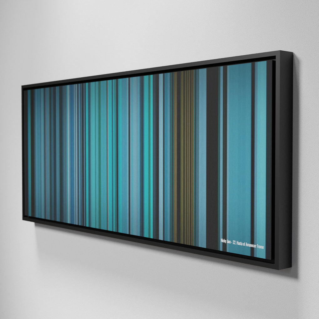 Presenting the ultimate treat for lovers of the Nicky Jam - 22. Hasta el Amanecer song. For the first time ever, we've mapped out the entire DNA of the Nicky Jam - 22. Hasta el Amanecer musical clip on canvas from start to finish. Every vertical stripe represents a scene from Nicky Jam - 22. Hasta el Amanecer video, with the color taken as the average of all the frames within that scene.